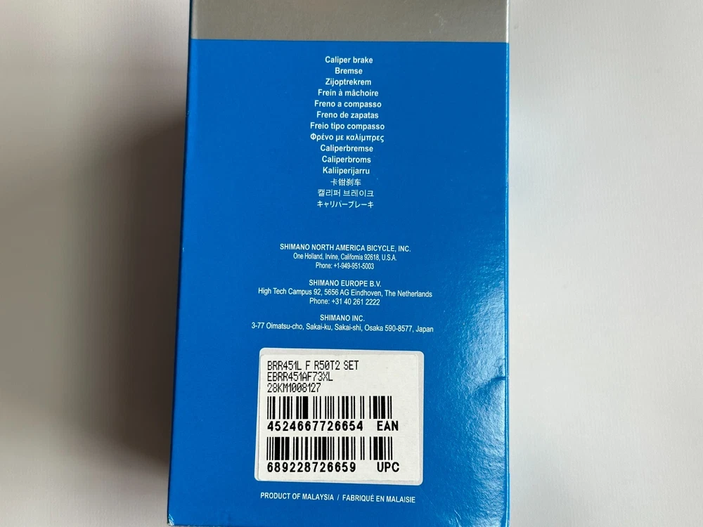 yumeR Shimano Rear Caliper Brake BR-R451 Front Black From Japan Item Description Brand : Shimano 1. New (Brand New) 2. Mint condition (Unused. Box opened or Box is a little damege.) 3. Near Mint (Used. Like New. Products with little or no signs of use) 4. Excellent condition (Used item in Excellent condition with all parts in place) 5. Good condition (Generally used and parts are available.) 6. For Parts (Not working or Parts are missing.) Notes Import duties, taxes, and charges are not included in the item price or shipping cost. These charges are the responsibility of the buyer. We do not allow the product price to be changed or written as a "gift" on the invoice or label. You will be responsible for shipping charges if the item is returned due to refusal to pay customs duties. In addition, we cannot ship to an address other than the one you specified after you purchased the merchandise. The buyer will be responsible for any additional shipping charges if the package is forwarded. Thank you for your understanding. We accept PayPal, Visa, MasterCard, American Express and Discover. Please make sure to pay within 4 days of winning an auction. If you need more than 4 days for payment, please contact us in advance. Japan Post, FedEx, or DHL will be used. If you wish to specify the shipping carrier, please contact us before purchase. Shipping charges may vary. Processing time 1-10 days after payment (In case of no trouble) SAL : 10-30 business days EPAKCET : 7-21 business days EMS : 4-14 business days FedEx : 2-7 business days DHL : 2-7 business days (Remote area fees may be added, please confirm in advance.) Please see our Return Policy for more details. Returns are the responsibility of the buyer. Please be sure to adhere to our eBay policy when requesting a return. We will always try to solve problem so please contact us before you open a case.