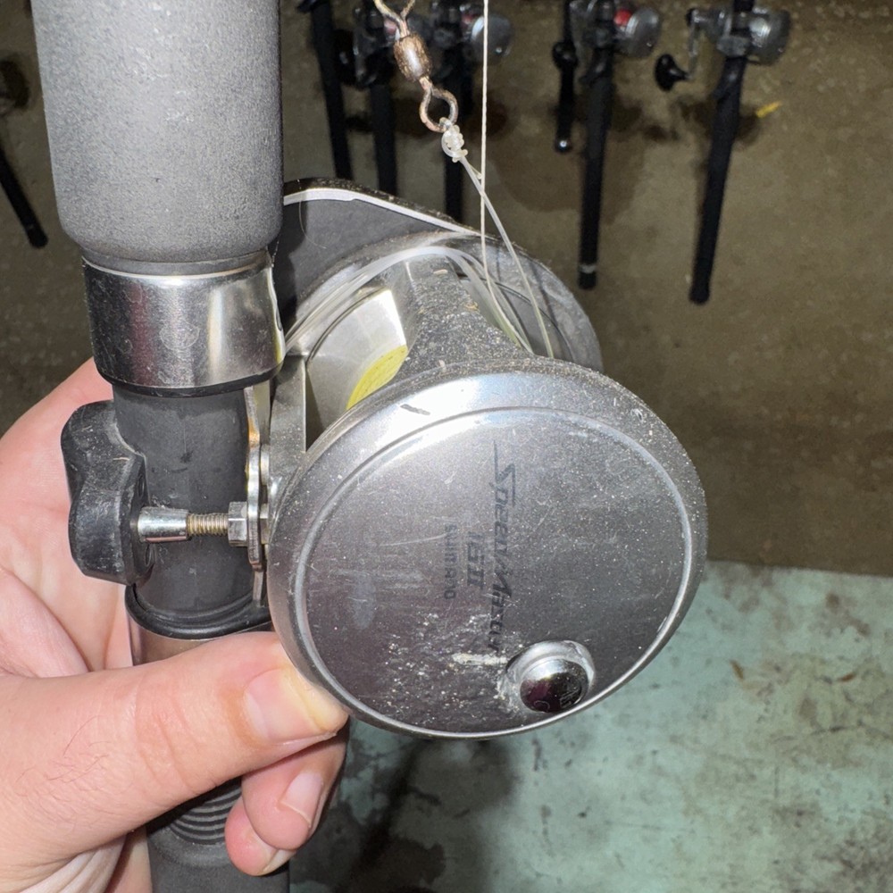 Used Speed master 16II, has corrosion, but works flawlessly. 1 available, no rod just reel. The Shimano Speedmaster II 16 is a high-quality fishing reel designed for saltwater fishing. With a gear ratio of 5.7:1 and 4 ball bearings, this reel offers smooth and efficient performance. The right or left-handed retrieve feature allows for versatile use, while the durable construction ensures reliability in challenging fishing conditions. Whether targeting all saltwater fish species, this Shimano Speedmaster II 16 is a top choice for any angler looking for a reliable and versatile fishing reel.