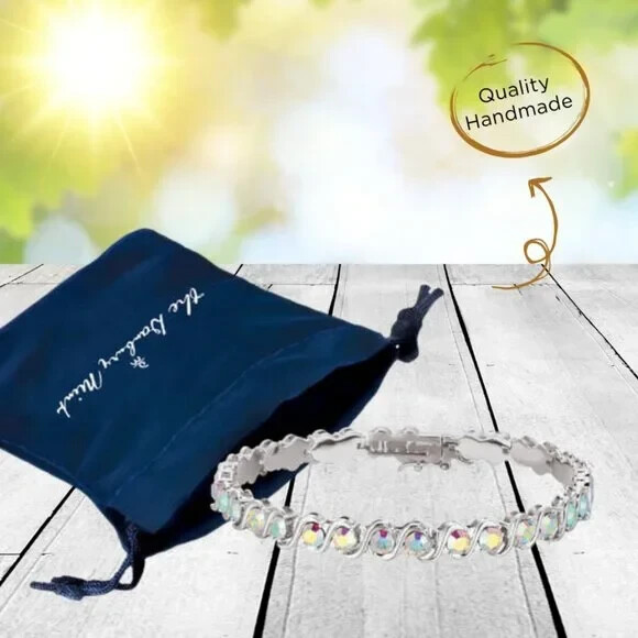 This stunning rhodium-plated tennis bracelet features 32 dazzling Aurora Borealis crystals. The crystals entice with an extraordinary color change depending on the light — from shimmering blues to luxurious golds, and a rainbow of colors in-between. Inspired by the graceful curves of ocean waves, the classic "S" design of this bracelet delicately embraces the wrist, exuding a sense of fluidity and sophistication. Material: Rhodium-plated Stones: Crystals Size: Bracelet is 7-1/2" long