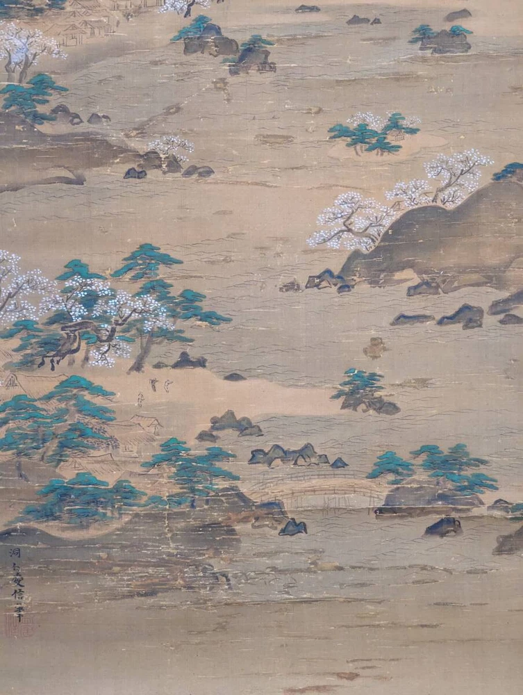 Shin-Made Hanging Scroll, Landscape Drawing, Painting, Traditional Japanese Four