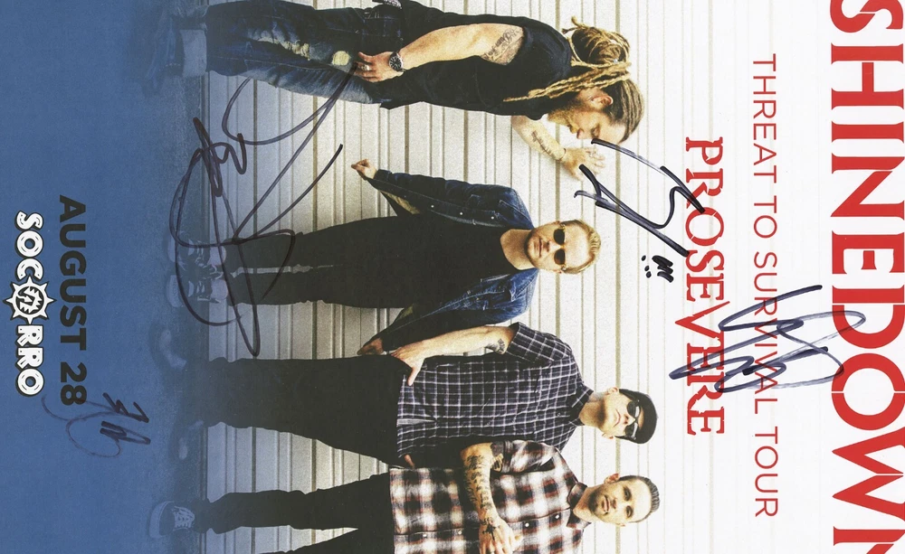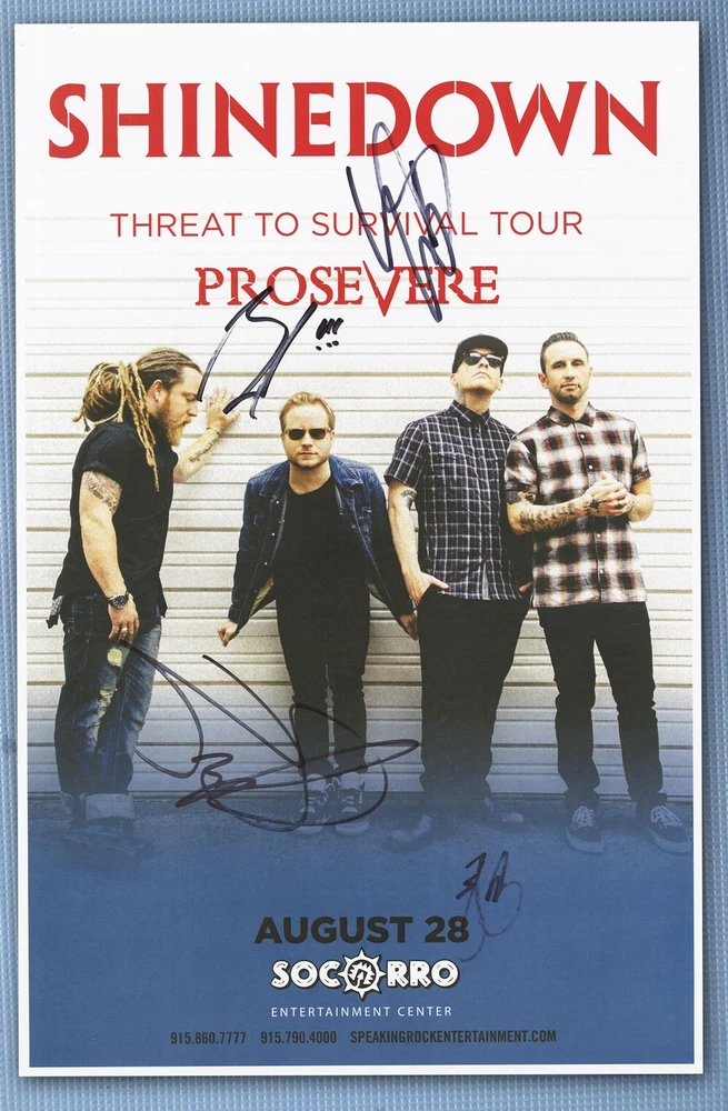 Shinedown Threat To Survival Tour 2015 concert poster El Paso, TX Signed by Barry Kerch, Zach Myers, Eric Bass and Brent Smith after the show Size 11" x 17"