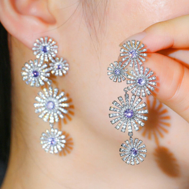 Shining Silver Plated Cubic Zirconia Purple Flower Long Chandelier Drop Earrings There’s an old saying that: Jewelry is woman’s best friend. And one appropriate luxury jewelry helps to spice up your charm and beauty. And here’s the reason why you choose us: ★ We adopts high-grade Cubic Zirconia, which displays pure and fascinating color; ★ All our items are Elaborate, Gold Plated (white gold plated/yellow gold plated/black gold plated), by which the texture is smooth and with fancy look, and will be appropriate for so many occasions; ★ Our items are with Exquisite Design, which shows your excellent taste, and could catch people’s attention easily. ★ Ideal gift for mother, wife, girlfriend, daughters, brides, bridesmaids, ect. Specification Type: Dangle/Drop Earrings Stone Material: Cubic Zirconia Base Metal Material: Brass Metal Material: Silver Plated Earring Post: 925 Sterling Silver Shape: Flower Color: Purple Suitable Occasion: Daily, Holidays, Party, Engagement, Wedding, Anniversary, Valentine’s Day, Carnival, Performance, ect. Package Includes 1 Pair of CZ Drop Earrings Please note: *Please bear in mind that there might be 1~2cm difference due to manual measurement. *Our digital images are as accurate as possible. However, different monitors may cause colors to vary slightly. *We offer after-sale service, if there is any item problem, please feel free to contact us via eBay message first, your kind understanding is much appreciated. About Us Payment Shipping Returns Contact us About Us Topjewel33 is a newly-established online store which dedicates to provide excellent luxury jewelry products, such as earrings, rings, necklaces, bracelets, brooches, hair accessories, and high grade jewelry sets. We target worldwide market, and we strive for offering you unbeatable low price and satisfied customer service. Payment We accept PayPal payment only. Payment must be received within 7 days from the date of purchase. Shipping We do hope all our customers could receive the order asap, so normally, the order will be sent out within 2 working days. And as the delivery is handled by the third party, sorry that we could not guarantee which date you could receive the package. And sometimes the delivery might be a little bit delay, especially in high volume or holiday seasons. However, please don’t worry and feel free to contact us via eBay message, and we will do our best to help. And we sincerely apologize for any inconvenience may cause. Sometimes custom tax might be required, and we are afraid that it will be covered by the buyers, thank you for kind understanding. Returns We provide 30 days money back return policy. And if you have any problem with the item, please make sure the item is in the original package and feel free to contact us via eBay message first, thank you for kind understanding and cooperation. Contact us We offer customer service, if you have any problem with the item before/during/after the purchase, please feel free to contact us via eBay message, and we will get back to you asap. Thank you for your kind patience.