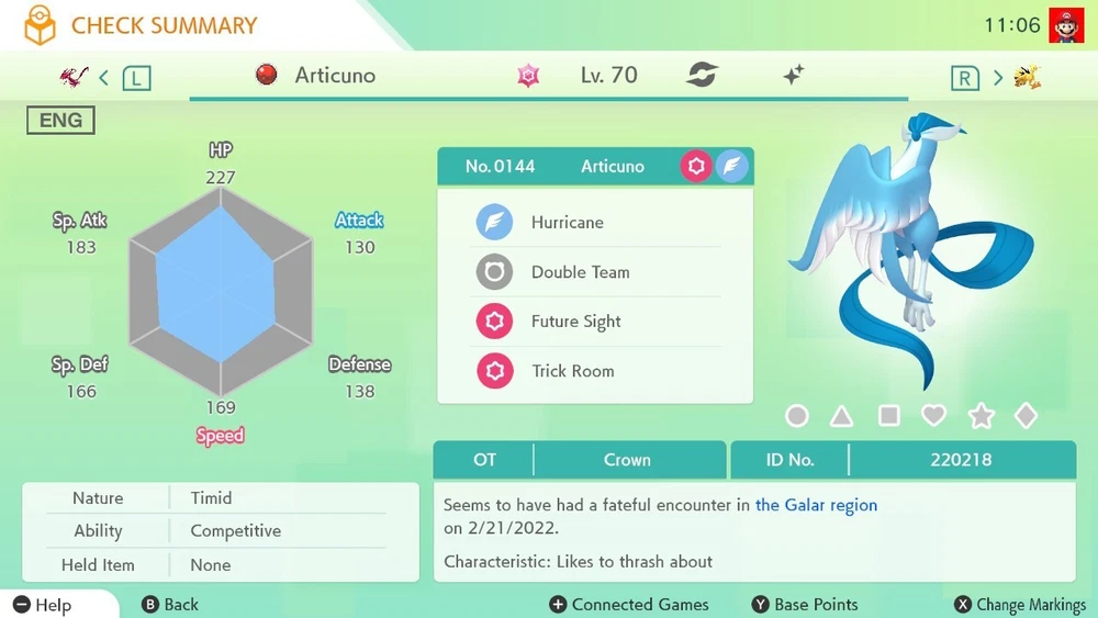 Free eBay listing template designed by dewiso.com FulaCity PokeCenter For all your Pokémon needs Details The Pokemon you'll receive has the following details: OT: Crown & Wild & Armor ID: 220218 & 220311 & 220415 Event: 2022 International Challenge Shiny Galarian legendary birds This trade is for game: Scarlet & Violet This event is 100% legal and untouched. For further details on this event you can use Bulbapedia. If you want to see my other events [click here] . If you have further questions [click here] to contact me. You can also reach me via : fulacitypokecenter Handling information To trade: * You need NSO subscription to use internet to trade. * Go in-game, Press X, Select "Poké Portal". Press "L button" to connect INTERNET * Select "Link Trade", Enter the code I'll give you * Press "+" and select "Begin Searching" No shipping involved at all since this is a virtual trade. Why buy from me? Over 6000+ positive feedback with over 27.000+ sales. Fast delivery 100% legal Pokemon (!!!) safe to use anywhere. Use them in Pokemon Home, GTS, Pokemon Online Battles, Online Raids, Online Trades without issues! Disclaimer: I'm not affiliated with Nintendo, Creatures Inc, The Pokémon Company or GAMEFREAK. You are paying for the time and effort I spent breeding/obtaining the listed Pokémon.