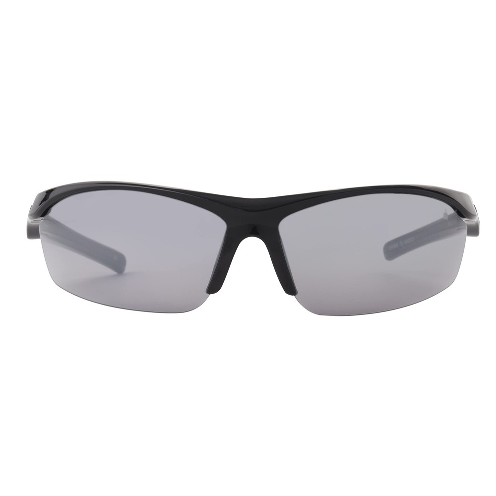 Description The Ready wrap-around sunglasses for men provide 100% UVA/UVB eye protection in a wrap-around frame made out of shiny black plastic with double injected black rubber temples, so you can focus on the game, not the blinding sun. The curved temples of these rectangle sunglasses for men, together with the black rubber nose pads, help to hold the golf and baseball sunglasses securely in place, so they won't fall off when you're playing hard. For the ultimate in style and performance, the smoke grey lenses with silver flash are also scratch- and impact-resistant with a hydrophobic coating that helps them to repel water. baseball and golf sunglasses for men are the ultimate triple-threat in durability, fit, and protection. Sport Sunglasses for Men: These men's sunglasses are specially designed for active wear and feature a shiny black plastic wrap-around frame and smoke grey lenses topped with silver flash; Lens' width: 71 mm, Bridge: 14 mm, Arm: 125 mm UV Protection: Our non-polarized sunglasses for men help shield eyes from the sun’s harmful rays by providing 100% UVA-UVB lens protection. Scratch and Impact Resistant: Made with plastic, anti-reflective easy-to-clean lenses designed for longevity, these men's sunglasses feature a scratch-resistant coating and are built for optimal performance Lightweight and Durable: These sport sunglasses for men have a lightweight, flexible frame that is built to stand up to intense athletic play with foldable, secure, comfortable arm closure that is also sweat resistant Men's Sunglasses: Unleash your inner athlete with a comfortable, snug fit that stays put during intense activity with sport sunglasses for men from Foster Grant
