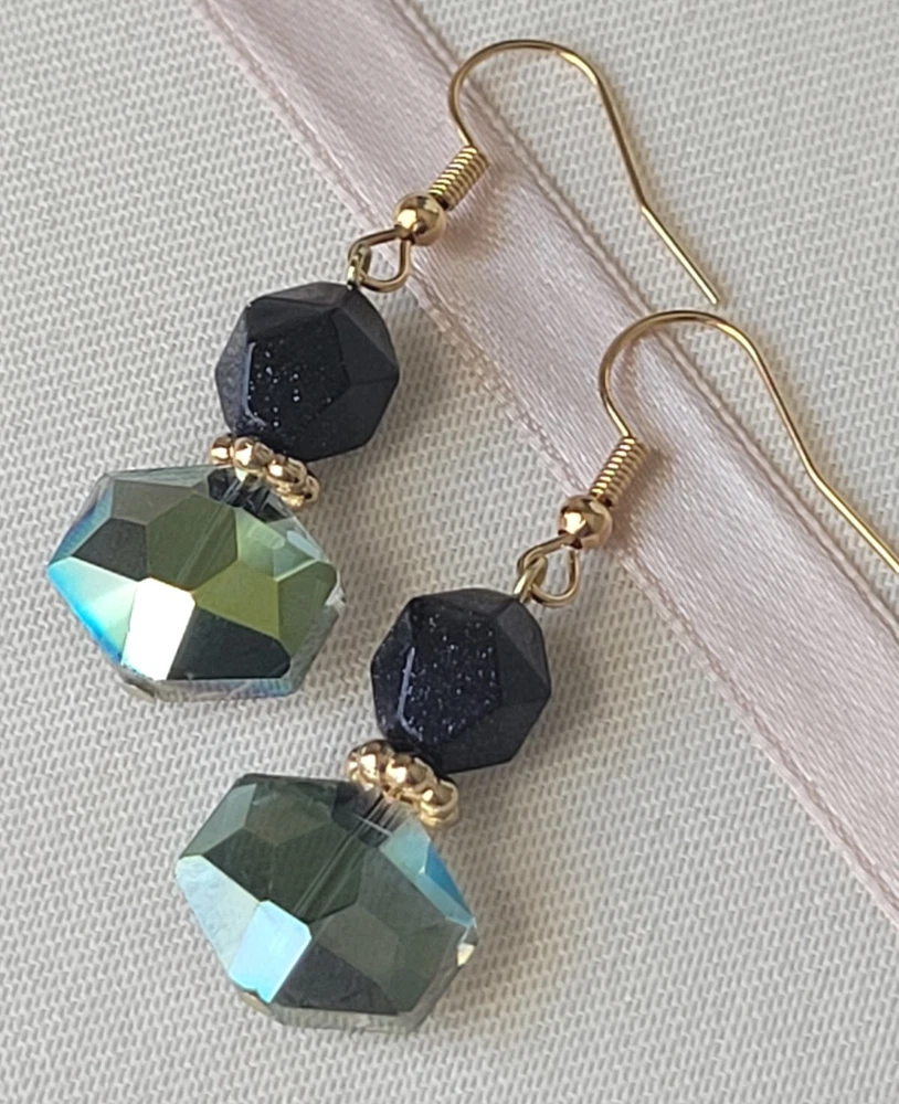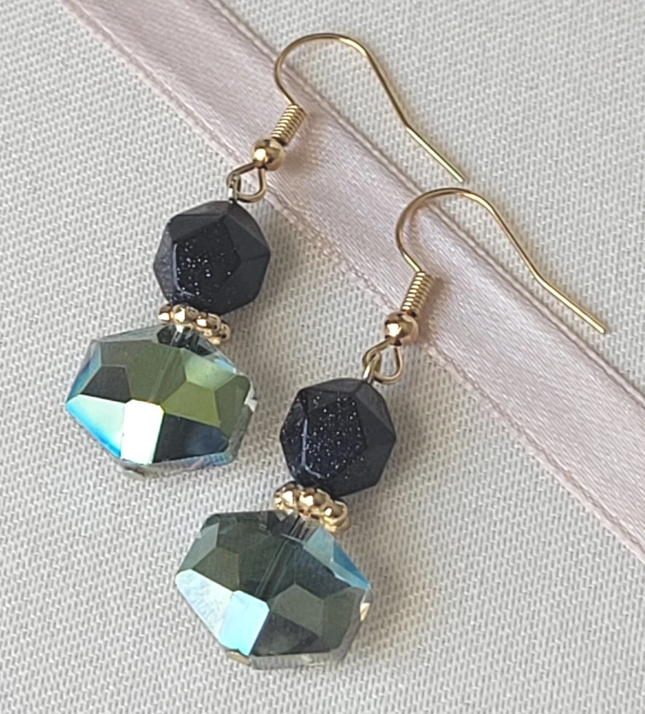 Add a touch of elegance to any occasion with these beautifully crafted Shiny Lady swing earrings. The intricate design features aurora crystal face cut beads in a mesmerizing night blue shade, paired with glass bead accents for a touch of added sparkle. These handmade earrings have a 1.7" length. Perfect for gifting on occasions. The stylish earrings come in a pair and are sure to add a cool and sophisticated touch to any lady's wardrobe. Ship FREE with USPS Ground Advantage