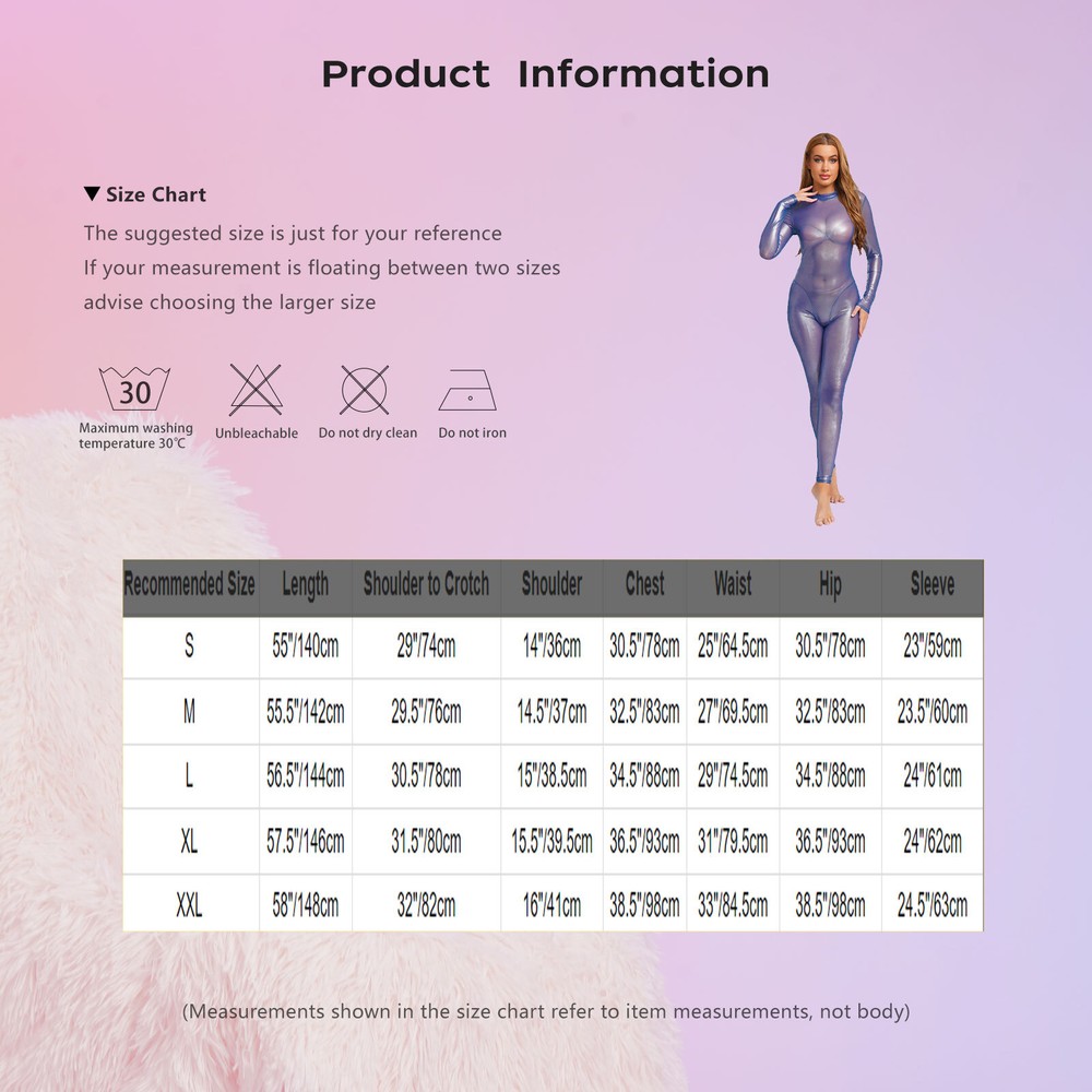 GIRLS DRESSES WOMEN DRESSES MEN UNDERWEAR BODYSUIT SWIMWEAR HOME&GARDEN Click Here to New Arrivals NEW ARRIVALS Women's Shiny Metallic Full Body Unitard Long Sleeve Long Pants Clubwear Party #1 Set Include : 1Pc Women’s Bodysuit Condition : New with tags Material : 85% Nylon, 15% Spandex Features: Crafted from nylon and spandex, this bodysuit offers excellent stretch and durability, ensuring a comfortable and flexible fit that moves with your body. The metallic shiny finish gives the bodysuit a trendy and eye-catching look, perfect for making a statement in the club or at special events. It features a full-body design with long sleeves and long pants, providing comprehensive coverage while still maintaining a sexy silhouette. The back zipper design not only makes it easy to put on and take off but also adds a touch of modern style to the overall look. Suitable for various occasions such as clubwear, nightwear, or as a unique fashion statement for parties and events. Size Chart : The suggested size is just for your reference. If your measurement is floating between two sizes, advise choosing the larger size. (Measurements shown in the size chart refer to item measurements, not body) Tag No. Recommended Size Length Shoulder to Crotch Shoulder Chest Waist Hip Sleeve S S 55"/140cm 29"/74cm 14"/36cm 30.5"/78cm 25"/64.5cm 30.5"/78cm 23"/59cm M M 55.5"/142cm 29.5"/76cm 14.5"/37cm 32.5"/83cm 27"/69.5cm 32.5"/83cm 23.5"/60cm L L 56.5"/144cm 30.5"/78cm 15"/38.5cm 34.5"/88cm 29"/74.5cm 34.5"/88cm 24"/61cm XL XL 57.5"/146cm 31.5"/80cm 15.5"/39.5cm 36.5"/93cm 31"/79.5cm 36.5"/93cm 24"/62cm XXL XXL 58"/148cm 32"/82cm 16"/41cm 38.5"/98cm 33"/84.5cm 38.5"/98cm 24.5"/63cm Friendly Tips: The size is measured by hands, please allow 1-3cm errors of measurement. Photo color might be a little different from the actual product due to color display of different monitors. #2 Set Include : 1x Bodysuit Condition : New without tag Material : 90% Nylon, 10% Spandex Features : Womens See-through Fishnet Bodysuit Lace Mock Neck Cutout Leotard Body Stockings Nightwear. Soft fabric, breathable, skin-friendly, lightweight, comfy to touch and wear, makes you feeling well. Lace mock neck, keyhole design, sleeveless, backless and crotchless, show your charming curve perfectly. See-through and cutout design makes you look more attractive, wonderful choice for your hot night. Suitable for date night, Valentine’s Day, wedding night, honeymoon gifts, trip night ,bridal shower. Size Chart The suggested size is just for your reference. If your measurement is floating between two sizes, advise choosing the larger size. (Measurements shown in the size chart refer to item measurements, not body) Tag No. Recommended Size Chest Length One Size One Size 10.2’’-37.8’’/26-96cm 32.3’’/82cm Friendly Tips: The size is measured by hands, please allow 1-3cm errors of measurement. Photo color might be a little different from the actual product due to color display of different monitors. Product names are trademarks of the listed manufacturer or other owners, and are not trademarks of enfine. The manufacturer does not necessarily endorse use of these products. Terms and Conditions Shipping Combined shipping is limited only to the items listed under this seller account : enfine All the free shipping item don't offer discount. We REDUCE US$1.00 on shipping cost for each additional item. Please contact us to send you the update invoice once you finish your purchase. Please note that only the item in same currency can be combined.Please note that we do NOT offer shipping discount for bidding orders or item value less than $5.00 Please verify your address during checkout. We are not responsible for any wrong or undeliverable addresses. Your item will be sent to your ebay address. Please make sure your ebay address is correct. Any non- received items caused by invalid address are not in our full refund or replacement policy. All items will be shipped within 1 business day after full payment is received. It takes about 10-20 days to US UK AU DE; about 20-35 days to other countries.Shipping may influenced by holidays, events and other uncertainties. We could not guarantee the arrival time. If you can't accept the shipping time, please check the extra charge with us to ship your item via express. Please check my other products below: Women Bodystocking Crotchless Jumpsuit Hollow Out Bodysuit Lingerie Sleeveless USD 16.99 Men's Western Cowboy Bodysuit Top Flower Print Fringe Sleeveless Rave Party Wear USD 9.99 Women Rompers Sexy Bodysuit Micro Jumpsuit Sheer Nightwear Leotard Lingerie USD 12.99 Women Leotard Party Unitard Sexy Catsuit Bodycon Bodysuit Teddy Rompers Shiny USD 10.99 Womens Jumpsuit Patchwork Rompers Sequin Bodysuit Cosplay Lingerie Uniform USD 12.99 Women Bodysuit Short Jumpsuit Bottom Shapewear Tight Fitting Swimsuit Slim Fit USD 10.99 Women Shiny Metallic Bodysuit High Cut Thongs Color Block Jumpsuit Glamour Bar USD 16.99 Women Sling Bodysuit Silky Nightwear Glossy See Through Bodysuit Mystery Sheer USD 16.99 Women Rompers One Piece Jumpsuit Catsuit Bodysuit Lace-Up Underwear Leotard USD 12.99 Women Bodysuit PU Catsuit Comfortable Lingerie Metallic Outfits Front Zipper USD 16.99 Women Lingerie Open-Crotch Jumpsuit Rave Leotard Flirting Underwear Transparent USD 9.99 Women Bodysuit Party Jumpsuit Valentine's Day Leotard Sequins Catsuit Tassel USD 9.99 Women Lingerie Latex Leotard Zipper Bodysuit Teddy Jumpsuit Deep V Neck Optic USD 10.99 Women Catsuit Elastic Bodysuit Silky Jumpsuit Mesh Lingerie Tight See Through USD 6.99 US Womens Jumpsuits Rompe Bodysuit Catsuit Solid Color Lingerie See-Through USD 7.99 Womens Bodystocking Ice Silk Bodysuit Playsuit Jumpsuit Transparent One Piece USD 8.99 US Women Lingerie Ultra Thin See-Through Body Stocking High Elastic Sheer Tights USD 6.19 US Women Tank Sleeveless Full Body Jumpsuit Romper Unitard Bodysuit Shaperwear USD 7.99