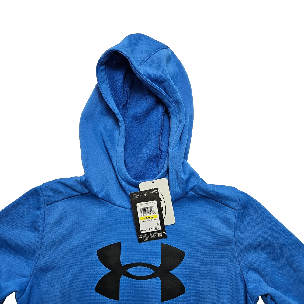 Shirt Hoodie Blue Fleece Big Logo Soft Pocket Boys M By Under Armour MSRP 40.00