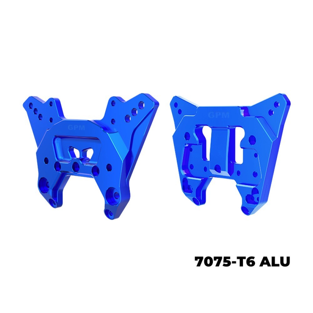 Function & Usage Stabilizes the shocks and the front & rear upper arms for improved suspension performance and precise handling. Upgrade Advantages Made of lightweight, high tensile strength 7075-T6 alloy for superior sturdiness and support. Features a modern 3D design. Multiple positioning holes allow adjustable shock angles for different play modes. The GPM shock absorber bracket is partially thickened to 9mm for added durability and resistance to deformation. All packaging accessories are pre-assembled; medium-strength screw glue is recommended to maintain stability and prevent loosening. Adjustable Mount shocks onto different positioning holes to adjust shock angles. Package Includes Front Shock Tower × 1 Rear Shock Tower × 1 Original Part # ARA320760, ARA320759 Compatibility ARRMA 1/8 KRATON 6S EXB 4X4 RTR BRUSHLESS SPEED TRUCK (ARA8708V6) ARRMA 1/8 KRATON 6S EXB AVC 4X4 RTR BRUSHLESS SPEED TRUCK (ARA8708T1) ARRMA 1/8 KRATON 6S V6 4X4 BLX BRUSHLESS SPEED MONSTER TRUCK RTR (ARA8608V6) ARRMA 1/8 NOTORIOUS 6S V6 4X4 BLX BRUSHLESS STUNT TRUCK RTR (ARA8611V6)