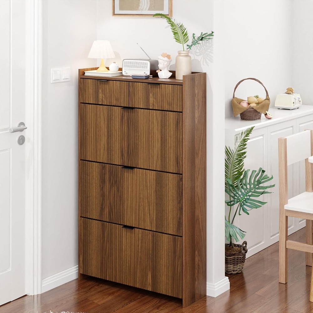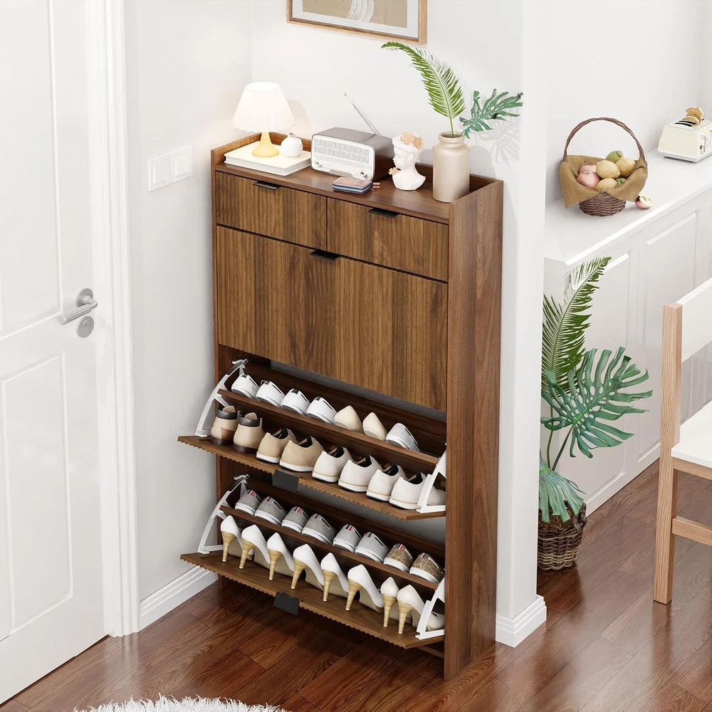 Product Description About this item • ARTISTIC DESIGN: The rattan art design adds a touch of elegance and sophistication to your home décor, making it a functional and stylish piece. With its unique shape and intricate weaving, this shoe cabinet is not only a storage solution but also a striking decorative accent. • SUPER STRONG AND MORE DURABLE: Our entry shoe cabinet is made of high quality MDF, and the non-slip rubber pads on the table legs provide greater stability and avoid scratching the floor. Smooth and eco-friendly coating is waterproof and easy to clean with a cleaning cloth. • PLENTY OF STORAGE SPACE: designed with a small drawer on the right side as well as a storage compartment on the lower right side. You can put umbrellas in it, providing ample storage space while keeping your shoes neatly organized and easy to access. • EASY TO ASSEMBLE: Easily assemble this shoe cabinet! (Approx. 30 minutes) . Assembly instructions and assembly tools are included, easy to install with illustrated instructions. • AFTER-SALES SERVICE: If you have any questions about the rattan shoe cabinet with the door, please feel free to contact us. We will reply to you as soon as possible within 24 hours. On Aug 12, 2025 at 00:30:26 PDT, seller added the following information: