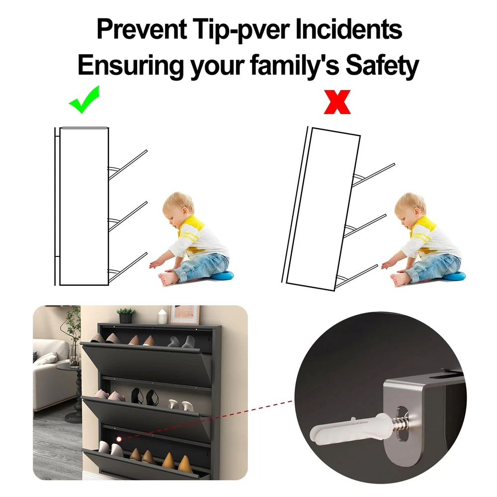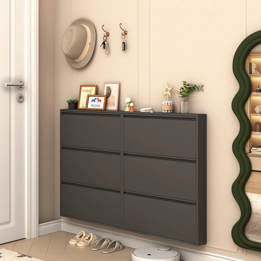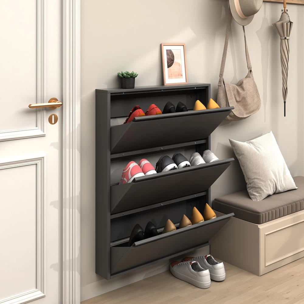 Shoe Cabinet Storage for Entryway Slim,Metal Shoe Cabinet with 3 Flip Drawers,Narrow Wall Shoe Storage Cabinet for Entryway,Hallway,Living Room,Black,Require Assembly Product Features 【Entryway Shoe Cabinet】Black metal shoe cabinet for entryway is simple and stylish, which can perfectly match all kinds of decoration styles. Perfect for placing in the entrance, hallway, living room, or porch, provide a neat and organized space for your home 【Metal Wall Shoe Cabinet】Overall sizes: 31.5”W x 6”D x 43.01”H. Net Weight:29lbs,Gross Weight:33lbs.This multifunctional hidden shoe cabinet with 4 flip drawers offering ample space to meet your family's needs., Its modular design not only stores shoes but also expands to accommodate other small items like keys, wallets, or accessories, making it a perfect shoe storage cabinet for any home. 【Space-Saving Design】The slim shoe storage cabinet features a wall-mounted design that frees up valuable floor space, making it perfect for small apartments or homes with limited room. Its compact yet functional structure ensures your entryway stays clutter-free, while the secure mounting prevents tipping, keeping children and pets safe. 【Large Capacity Shoe Cabinet】The narrow shoe cabinet with 3 flip drawers total of 8-12 pairs of shoes can be stored,effectively organizing all your shoes in one place.The compartment in the middle of each drawer can be adjusted or removed to accommodate different shoe 【Easy to assemble】All parts are numbered and each step of the installation has detailed instructions, easy to understand and assemble. In addition, if you have any problems with the product, please contact us in time, all problems will be solved within 24 hours. Note:Installing the screws may require an electric screwdriver, which will save time and labor. Shipping: Shipping is complimentary within the lower 48 US States. We Do Not Ship to PO/APO Boxes, HI or Alaska We Do Not Ship Outside of the Continental US All items ship within 24-72 hours of Payment For large items that require Freight shipping a valid phone number is required to call and schedule your delivery Terms of Sale and Feedback: Feedback is extremely important to us and eBay If you are satisfied with our transaction, please take a moment to leave Positive Feedback. YOUR Satisfaction is our #1 Priority! If there are any issues, PLEASE contact us BEFORE leaving a neutral or negative rating so that we may resolve any concerns. We PROMISE we can make you happy if you give us a fair chance. Returns / Concerns: All items qualify for returns within 14 - 30 days of receipt. Buyer is responsible for return shipping on any item that is not damaged Please be sure this is an item you want before making your purchase. Customer Satisfaction is our TOP priority! All items are IN STOCK at time of listing. Inventory on eBay changes constantly and it is impossible to maintain a perfectly accurate count of all items. Please do not penalize us if we have to issue you a refund! Thank You For Your Business!