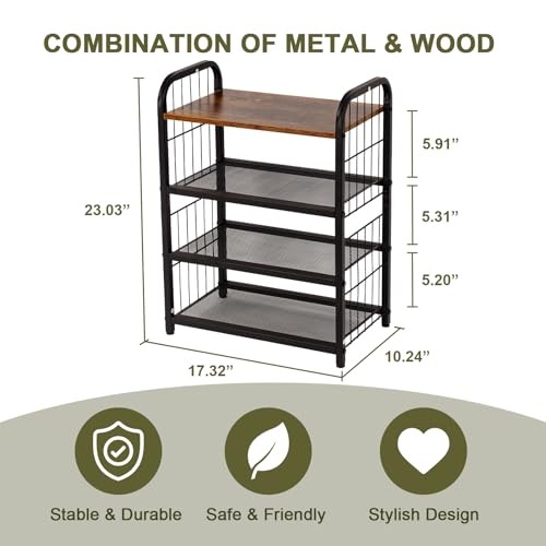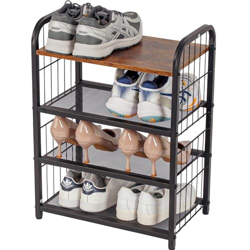 Return Policy Fast Delivery Trusted seller Shoe Rack, 4-Tier Shoe Organizer with Guardrails, Heavy-Duty Metal Mesh Shelves & Rustic Wooden Top for Stylish Closet & Front Door Storage Product Description No Hassle Assembly: This metal shoe rack is made to be easily assembled, and in addition to the illustrated instructions, we also provide a detailed installation video that guides you through every step of the assembly process. Careful design: Side fences prevent shoes from falling, adjustable foot brackets ensure stability, with the last partition being wooden and the others made of metal mesh, sturdy and durable. Space-Saving: 's multi-layer shoe rack maximizes space utilization. It takes up little space and can easily fit into tight corners. Each shelf can hold 1-2 pairs of shoes, from sneakers and high heels to boots and sandals, keeping them organized and easily accessible. Multi-Functional: Our shoe racks can be used for multiple purposes. Apart from organizing shoes, they can also be used to store your bags, hats, cups, and even kitchen or bathroom supplies, making them suitable for various rooms and storage needs in your home. Lightweight and Portable: Despite its sturdy construction, this shoe rack is lightweight and easy to move around, making it convenient for changing its location within your living space. Shipping Returns Payment Shipping Shipping is FREE to all addresses other than APO/PO boxes in the lower 48 states. All our stock ships from US-based warehouses. Shipped via USPS or UPS (depending on location and package weight) Unless stated otherwise, all orders will ship within 24-72 hours of your payment being processed. Check our feedback to see the great reviews of FAST shipping we offer. Returns Seller does not accept returns Payment We currently accept payment via eBay managed payments only. Once payment is cleared, we will dispatch your shipment within 1-3 business days. Please refer to the "Shipping" tab for more information regarding shipping speed to your destination.