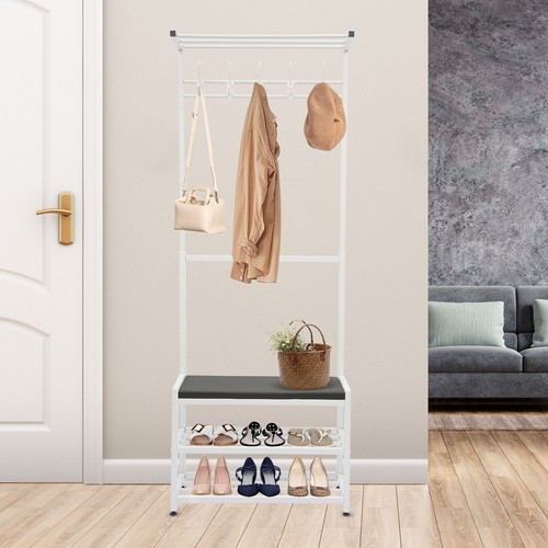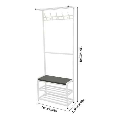 Specifications Color: White Style: Modern Process: Painting Material: Iron, PU, Sponge, Wood Board, Plastic Shape: Rectangular Assembly Required: Yes Mount Type: Freestanding Number of Hooks: 5 Number of Shoes Accommodated: About 6 Pairs Overall Load-bearing Capacity: About 100kg/220.46lbs Product Size: 60*25.5*160cm/23.62*10.04*62.99in Package Size: 91*26*8cm/ 35.83*10.24*3.15in Gross Weight: 4.5kg/9.92lbs Net Weight: 3.75kg/8.27lbs Package Included 1* Coat Shoe Rack with Stool Welcome to zhuzhubang!Have a nice day! Description Are you still struggling with chaotic shoes, coats, and hats, this coat shoe rack with stool is for you. The premium materials and painting process ensure high durability and easy cleaning. The pleasing and generous appearance can match your home decoration. Strong load-bearing capacity is a truly exceptional find. All in all, it is a very practical and functional piece of furniture that can provide storage space to organize clothes and shoes, while adding a beautiful and comfortable atmosphere to your home environment. Details Raised Bottom: It is conducive to moisture resistance and facilitates cleaning. Soft Cushion: The soft cushion with built-in sponges allows you to comfortably sit and change your shoes, which is very convenient. Plastic Foot Pads: They can stabilize the product better and make it less likely to slide. Smooth Edge: The rounded and smooth edges not only add to the aesthetics of the product but also improve the safety of use. Specifications Color: White Style: Modern Process: Painting Material: Iron, PU, Sponge, Wood Board, Plastic Shape: Rectangular Assembly Required: Yes Mount Type: Freestanding Number of Hooks: 5 Number of Shoes Accommodated: About 6 Pairs Overall Load-bearing Capacity: About 100kg/220.46lbs Product Size: 60*25.5*160cm/23.62*10.04*62.99in Package Size: 91*26*8cm/ 35.83*10.24*3.15in Gross Weight: 4.5kg/9.92lbs Net Weight: 3.75kg/8.27lbs Package Included 1* Coat Shoe Rack with Stool All Accessories for Assembly Notes Please do not hang heavy clothing or other overweight items on the top bar or hooks. Please do not exceed its weight limit. Please note that children are not allowed to climb or play on the product for safety reasons. Please be careful during assembly and disassembly. Please allow the slight color difference caused by the shooting light and 1-3cm error due to manual measurement, and make sure you do not mind before you order. Build to Last: It is mainly made of high-quality iron with a painting process, which is less prone to rust, wear, and deform, and has a long service life. Strong Load-bearing Capacity: The high-quality material and strong connection between parts make this product hold about 220.46 lbs, so you can use it with confidence. Highly Practical: The top tier can be used for shoeboxes and other infrequently used items, 5 hooks can be used to hang commonly used clothes, hats, bags, etc.(not included), the bottom 2-tier shoe rack with a stool can be used for easy access to and change of shoes. Space Saving: With a small footprint (23.62*10.04 inches) and a vertical design, it's suitable for small rooms without taking up much space. Stylish Style: The simple look, elegant white color and minimalist lines make the product stylish and elegant, which can fit well with your existing furniture and add sophistication to your room. Easy to Install: A simple construction and complete accessories help you achieve a quick installation, and you just need to make sure all parts are properly nested. Easy to Clean: Thanks to its smooth surface and simple structure, you can easily clean it with a rag(not included). Ideal Gift: With a beautiful appearance and practical performance, it is a great surprise for your wife, mother, daughter, friend or loved one. Payment Delivery details Terms of sales About us Contact us Payment We accept ebay payment 。 Fees such as import duties, taxes are not included in the item price or shipping costs. These charges are the buyer's responsibility. Delivery details Shipping: 2-9 working days to: USA Terms of sales We maintain high standards of excellence and strive for hundred percent customer satisfaction. Feedback is very important to us. We hope that you contact us immediately before you give neutral or negative feedback, so that we can address your concerns. It is impossible to address issues if we do not know about them! About us Your satis faction is our ultimate goal. We work hard to earn your trust and future business. Our certified technicians have tested each item before shipping. The unit comes with 1 year limited warranty on all manufacturing defects. a) If you receive a defective item, you may return it or ask for a discount. Please contact us within 14 days after you receive the package. b) What you returned must be intact and in its original packaging as re? u. Customer is responsible for shipping costs of the returned item. c) We will cover the cost of shipping back t with the shipping rate indicated in the registration page. We will send you a new unit or refund the full payment you paid. Thank you. Contact us Business Hour Business Hour: Monday To Friday: 8:30 AM to 5:00 PM (Beijing China time) Due to time zones, our reply to your questions may not be immediately. But within above working time, we will reply your email within 24 hours. If it's non-workdays, please kindly be patient and wait till Monday. Please contact us with ebay message. Please feel free to contact us if you have any questions. Monday To Friday: 8:30 AM to 5:00 PM (Beijing China time) Due to time zones, our reply to your questions may not be immediately. But within above working time, we will reply your email within 24 hours. If it's non-workdays, please kindly be patient and wait till Monday. Please contact us with ebay message. Please feel free to contact us if you have any questions.