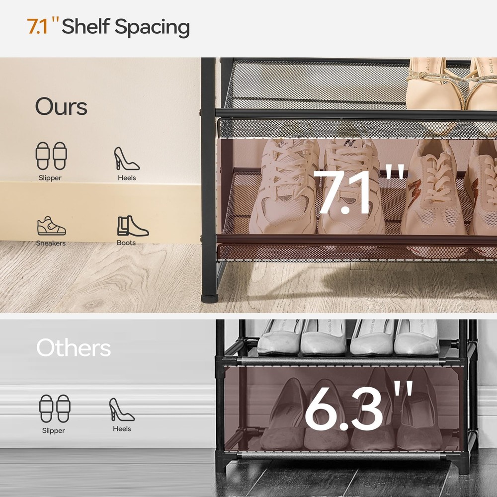 $ 7.025-Tier Shoe Rack with 4 Metal Shelves, 16–20 Pairs, Rustic Brown & Black