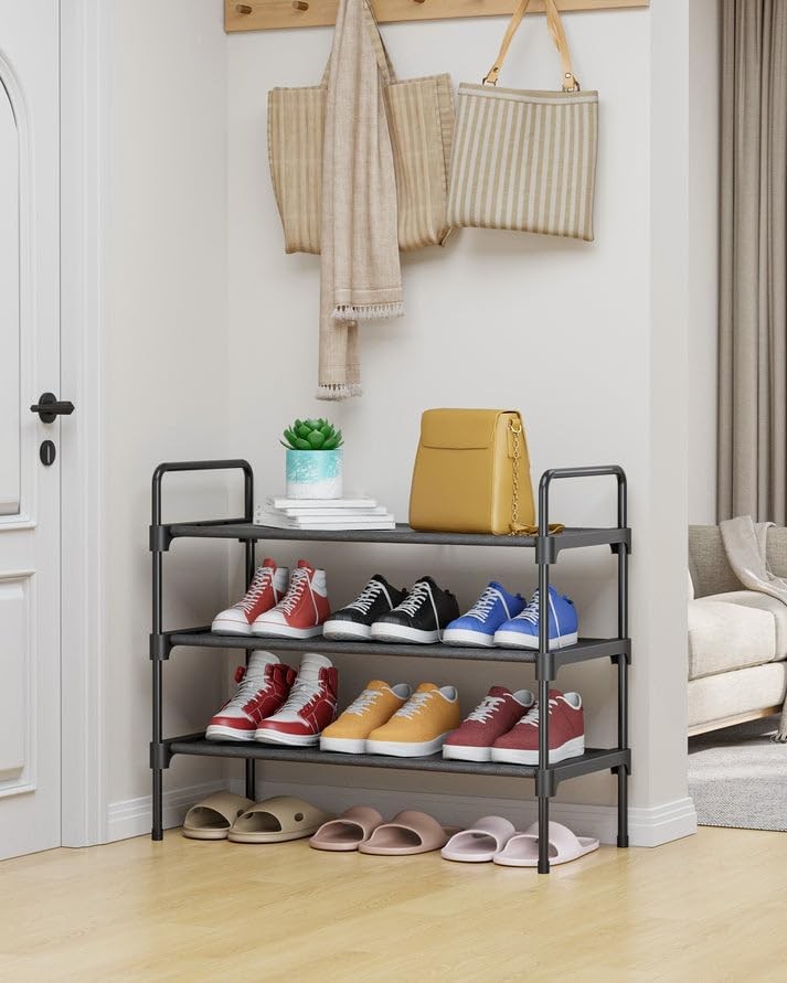Shoe Rack Organizer – Space Saving Storage Shelf for Entryway, Closet & Home Keep your footwear organized and your space clutter-free with this compact and practical shoe rack. Designed to fit perfectly in entryways, closets, and small spaces, it offers a smart storage solution for everyday use. ✔ Large Capacity Design Measuring 27.6" x 11.8" x 22.6", this shoe rack provides generous storage while maintaining a compact footprint. It easily accommodates multiple pairs of shoes including sneakers, flats, heels, and more, keeping them neatly arranged and within reach. ✔ Durable & Long-Lasting Materials Constructed with thickened metal tubes and strong plastic connectors, this shoe rack ensures reliable stability. The non-woven fabric shelves are tear-resistant and sturdy enough to support daily use. The materials are also rust-resistant and water-resistant for easy maintenance. ✔ Tool-Free Assembly Designed for convenience, this shoe rack can be assembled without any tools. The simple structure allows for quick setup using the included instructions, making it easy for one person to assemble in minutes. ✔ Stackable & Detachable Design Customize your storage according to your needs. Stack multiple units to maximize vertical space or detach layers to fit smaller areas. Shelves can also be removed individually to create space for taller footwear such as boots. ✔ Versatile Use Perfect for entryways, closets, bedrooms, or living rooms. Its space-saving design makes it suitable for apartments, dorms, and small homes while keeping shoes organized and easily accessible. Package Includes Shoe Rack Frame Fabric Shelves Connectors Assembly Instructions Note Please ensure all parts are properly connected during assembly for maximum stability.