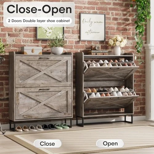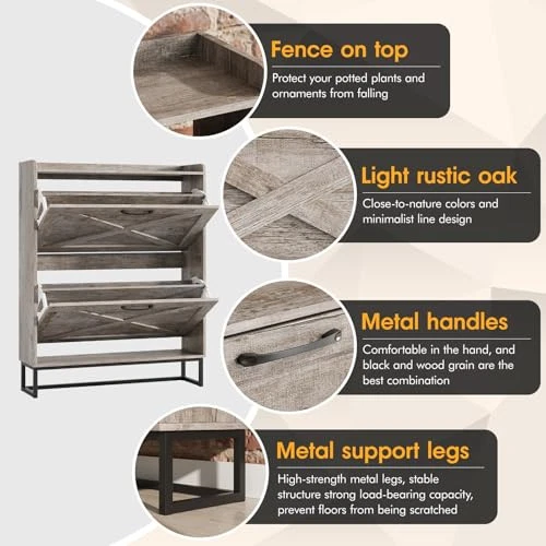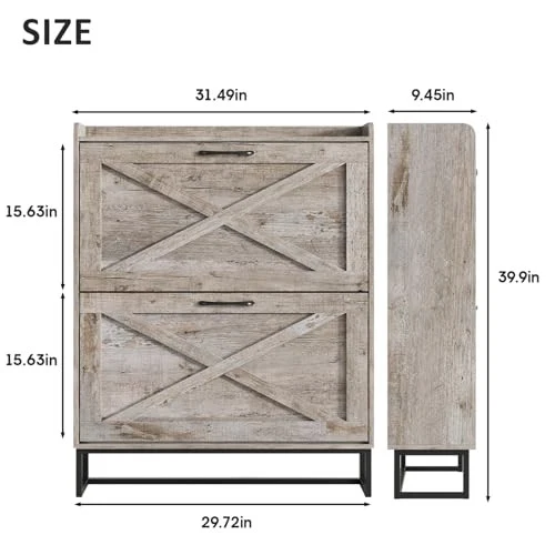 Return Policy Fast Delivery Trusted seller Shoe Storage Cabinet with 2 Flip Drawers, Freestanding Organizer with Metal Legs for Entryway, Narrow Shoe Rack Cabinet, Dark Walnut Product Description Entryway Shoe Cabinet: The hidden shoe storage cabinet with 2 flip doors, stylish and simple rustic brown makes it a neat and beautiful finish and looks great in many different home styles. Perfect for placing in the entryway, hallway, living room, or porch, provides a neat looking in your home and space saving Flip Drawers Shoe Cabinet: The modern freestanding shoe cabinet adopts the design of space-saving flip drawers, which is easy to open and close. Compared with ordinary shoe racks, this narrow shoe cabinet can be placed in a narrow space, keeping your shoes away from dust and preventing pets and bugs from biting your shoes Large Capacity Shoe Cabinet: The drawer shoe cabinet can store up to 24-32 pairs. T are two upper and lower drawers, each drawer contains two layers of storage space. The panel can be adjusted or removed in two grooves to accommodate different heights and sizes of flats, mid boots or heels! Slippers or sweeping robots can be placed on the bottom. T is a fence on the top, ideal for placing potted plants, ornaments, socks and keys, without worrying about falling Safe and Reliable Quality: This slim shoe cabinet contains an anti-tipping device, which can be fixed on the wall to prevent tipping and protect children's safety. Made of high-quality MDF wood and metal legs, the stable structure ensures super load-bearing capacity. The black metal handle is simple and elegant, feels comfortable, and prevents scratches and injuries during use. The black metal legs prevent the floor from being scratched, and can be easily cleaned with a damp cloth Narrow Shoe Cabinet: Most other shoe cabinets have a depth of 14-15in, while our slim shoe cabinet depth front to back is 9.35in! Only half the volume of other shoe cabinets, but it can neatly hide and store more and larger shoes! Innovative flip space-saving design, bringing more space in the entry area or hallway Shipping Returns Payment Shipping Shipping is FREE to all addresses other than APO/PO boxes in the lower 48 states. All our stock ships from US-based warehouses. Shipped via USPS or UPS (depending on location and package weight) Unless stated otherwise, all orders will ship within 24-72 hours of your payment being processed. Check our feedback to see the great reviews of FAST shipping we offer. Returns Seller does not accept returns Payment We currently accept payment via eBay managed payments only. Once payment is cleared, we will dispatch your shipment within 1-3 business days. Please refer to the "Shipping" tab for more information regarding shipping speed to your destination.