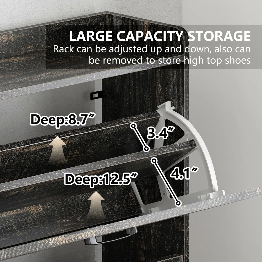 Shoe Cabinet, Entry Home Shoe Cabinet, Entrance Balcony Storage Cabinet, Large Capacity Shoe Rack, Grey 【High-Quality Retro Shoe Cabinet for Entryway | 1-Year Warranty & 30-Day Free Return】 Origin: China | Color: Gray+Charcoal | Material: Particle Board (Engineered Hardwood) | Style: Retro | Wood Tone: Brown Perfect for your primary living space, this retro-style shoe cabinet combines elegant design with powerful storage, making it an ideal addition to your entrance, balcony, corridor, or living room. It not only keeps your shoes organized but also elevates your home’s aesthetic with its classic brown wood tone and sleek finish. 📐 Product & Package Dimensions Assembled Size : 51.18 inches (L) × 9.45 inches (W) × 45.08 inches (H) | Weight: 59.52 lbs Package Size : 52.37 inches (L) × 18.91 inches (W) × 7.88 inches (H) | Weight: 83.77 lbs ✨ Key Features Space-Saving Narrow Design : Ultra-thin structure is specially designed for tight spaces, fitting seamlessly into entrances, corridors, and small living areas. Maximizes space utilization while keeping your shoes dust-free and neatly organized—no more cluttered entryways! Large Capacity & Versatile Storage : Equipped with 2 spacious drawers, it easily accommodates all shoe types: high heels, sneakers, flats, boots, and more. The top surface adds extra storage for wallets, shoe covers, umbrellas, keys, or other daily miscellaneous items, meeting all your entryway storage needs. Elegant Retro Aesthetic : Features a natural rural brown wood tone with a clean, classic finish. All screws are hidden inside for a sleek, seamless look that blends perfectly with various home decor styles. Understated yet stylish, it enhances your home’s charm without sacrificing functionality. Durable & Easy to Maintain : Constructed from high-quality Particle Board (Engineered Hardwood) that is waterproof, scratch-resistant, and easy to clean. Floor-standing design ensures strong stability, while the elegant black metal handle adds a touch of sophistication and offers a comfortable grip for daily use. 🛡️ After-Sales Guarantee We stand behind our product quality! Enjoy 1-Year Quality Warranty against manufacturing defects. If you are not satisfied with your purchase for any reason, we offer a 30-Day Free Return & Exchange Policy —shop with confidence! 📌 Product Details Material: Particle Board (Engineered Hardwood) Color: Gray+Charcoal Style: Retro Wood Tone: Brown Applicable Scene: Primary Living Space (Entrance, Balcony, Corridor, Living Room) Assembly Required: Yes (Easy-to-follow instructions included) Transform your entryway into a tidy, stylish space with this versatile retro shoe cabinet—order yours today!
