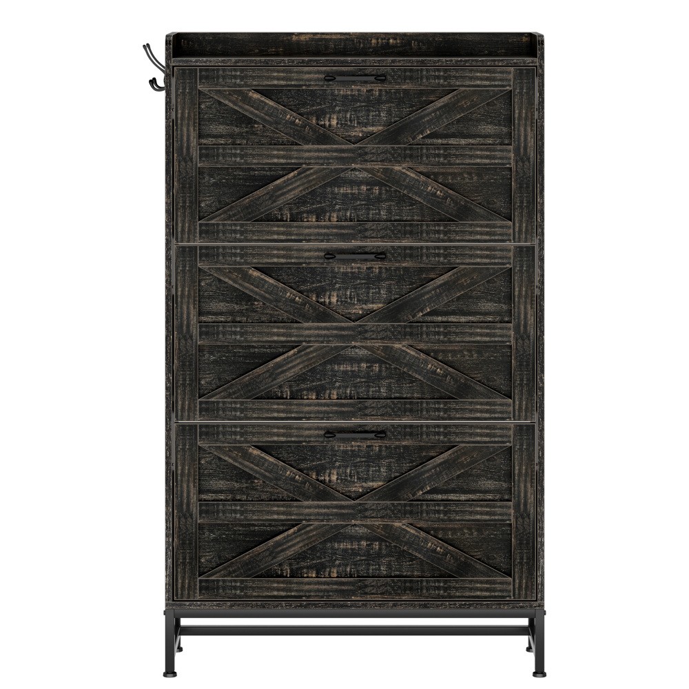 $ 36.610 Tier 30 Pairs Shoe Cabinet with Doors Wood Stand Shoe Organizer for Entryway