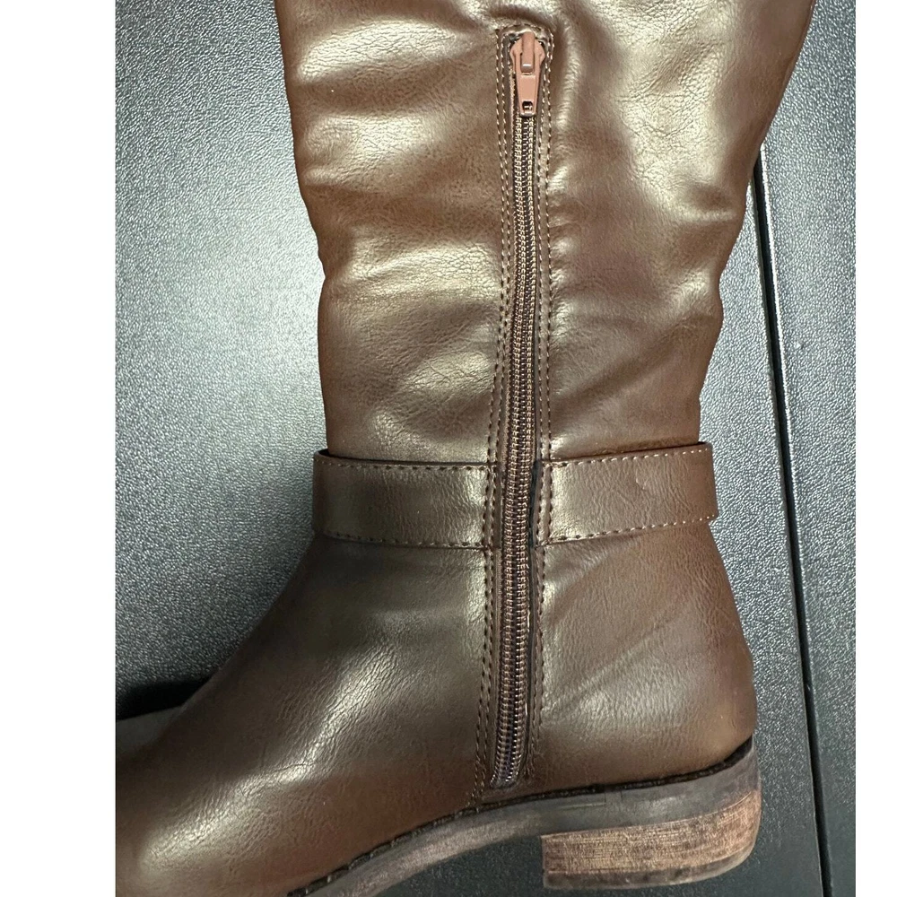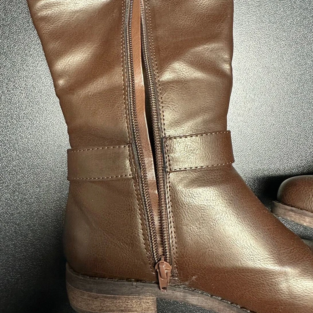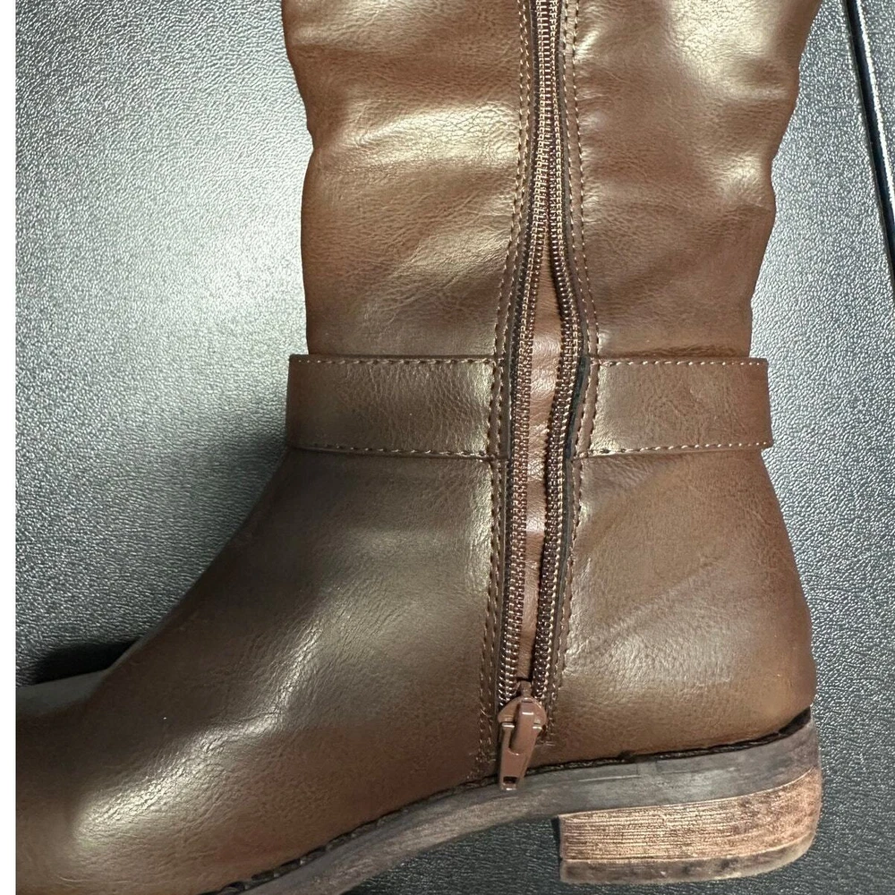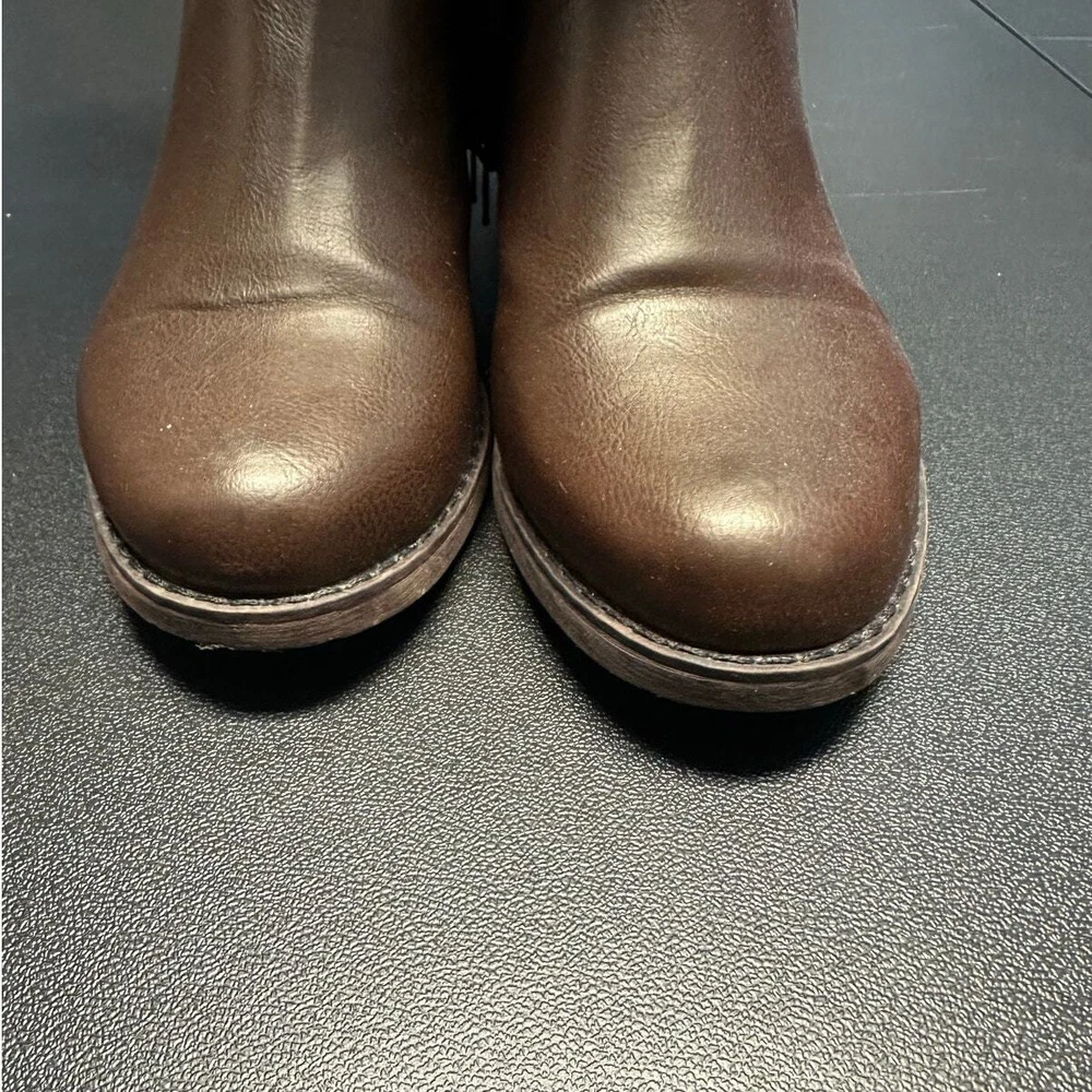 Shoedazzle Brown Faux Leather Side Zip Knee Boots Size 6 Excellent preloved condition Brown faux leather Side half zip / pull on style Rubber sole with slight heel All items are cleaned prior to listing Reasonable offers accepted Bundle and Save!! ***Shipments go out daily, Monday-Friday*** Classic Neutral Causal Business Casual Winter Fall Basic Preppy