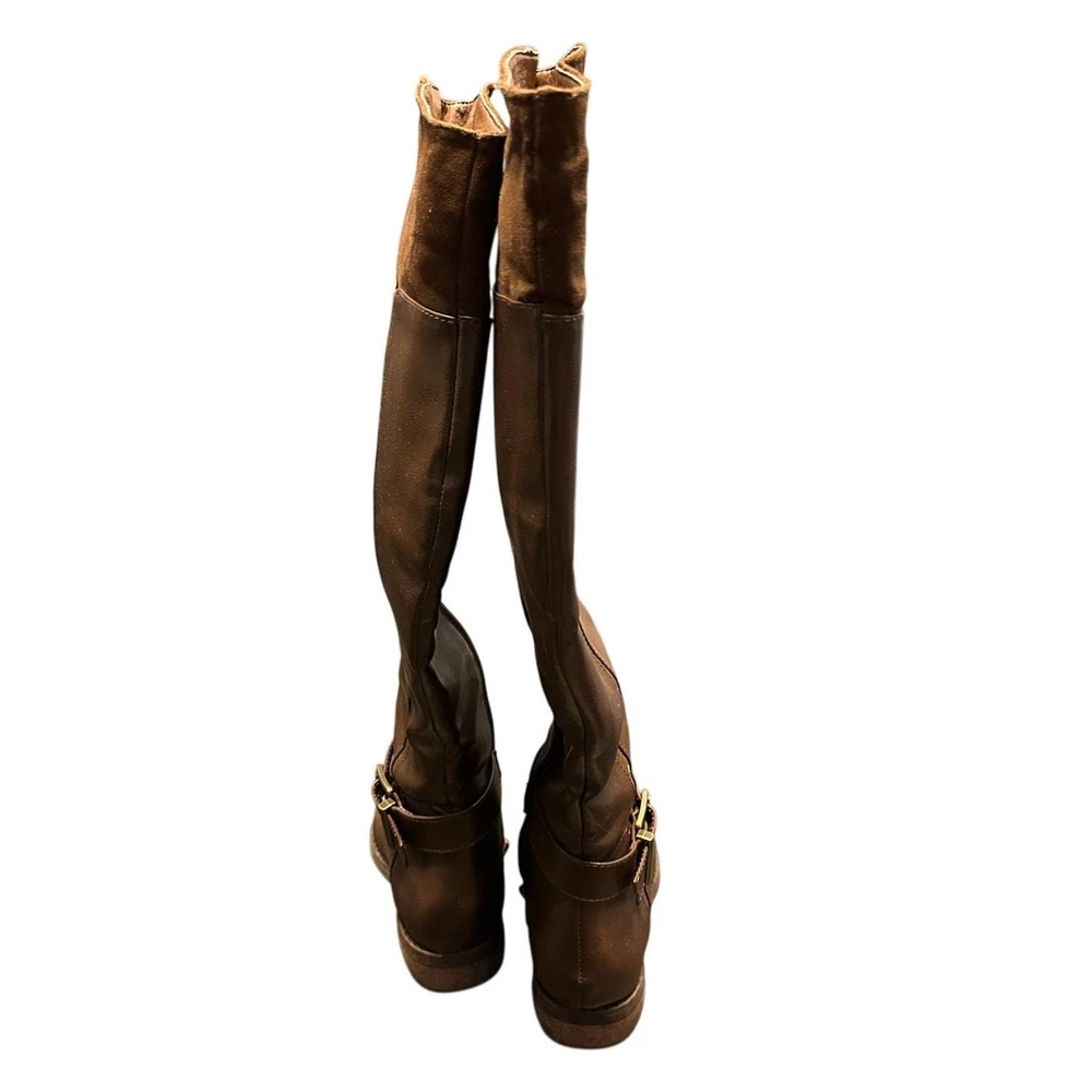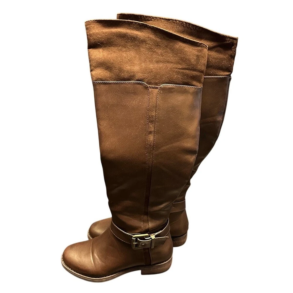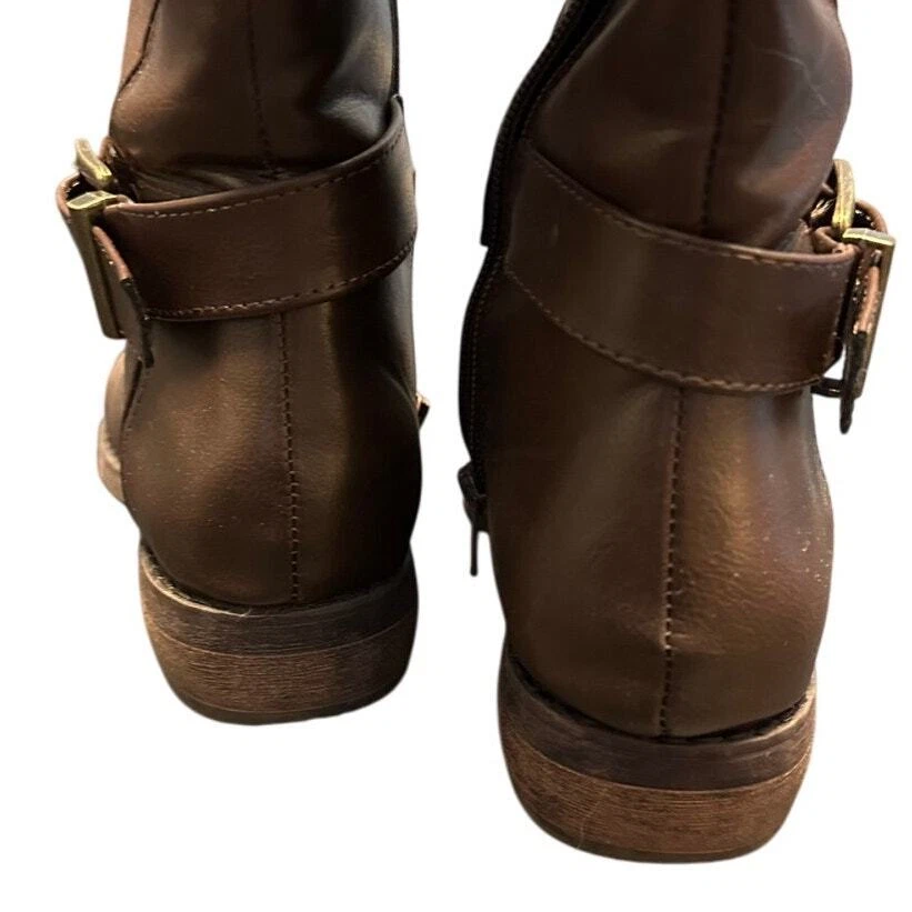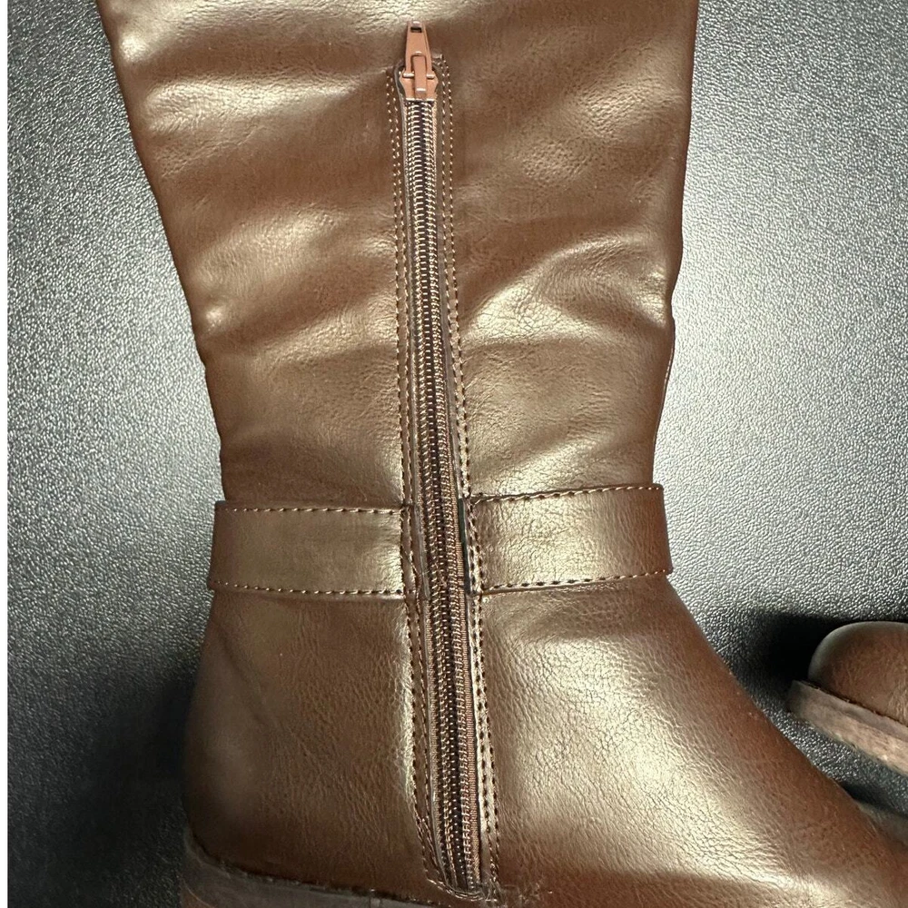 Shoedazzle Brown Faux Leather Side Zip Knee Boots Size 6 Excellent preloved condition Brown faux leather Side half zip / pull on style Rubber sole with slight heel All items are cleaned prior to listing Reasonable offers accepted Bundle and Save!! ***Shipments go out daily, Monday-Friday*** Classic Neutral Causal Business Casual Winter Fall Basic Preppy