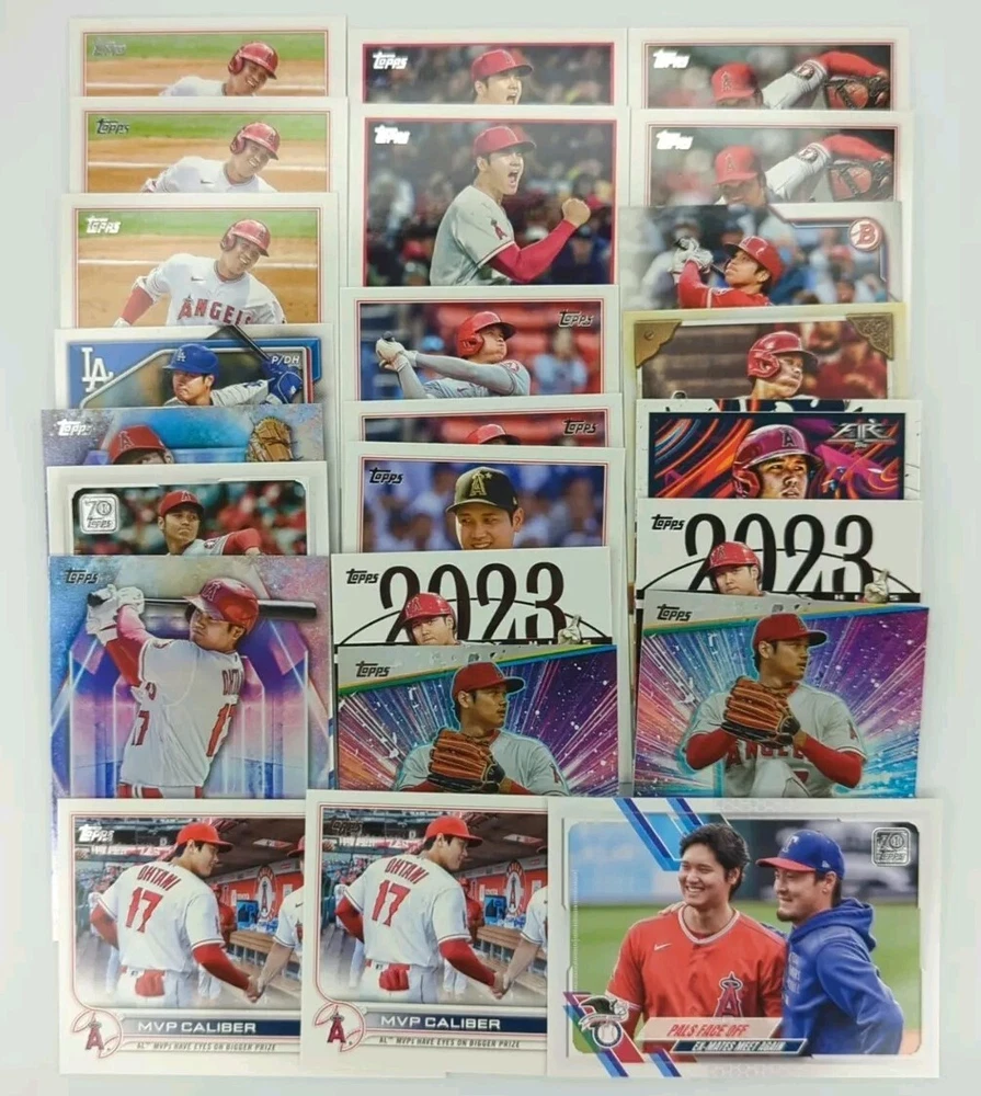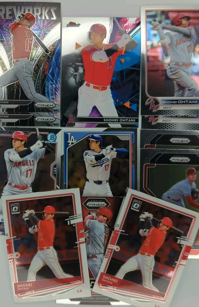 This Shohei Ohtani 36 card lot includes various seasons of baseball, with cards from the Angels and Dodgers. The set features cards from Topps, Prizm, and Optic, and includes inserts for added value. The cards are from the Major League Baseball (MLB) league and were manufactured by Topps in 2023. The lot is perfect for fans of the Los Angeles Dodgers and Los Angeles Angels, and collectors of sports trading cards. With 36 cards in total, this lot is a great addition to any collection. Don't miss out on the chance to own these unique and collectible cards.