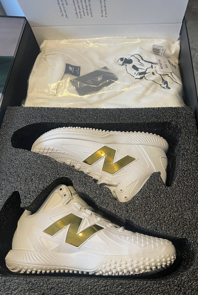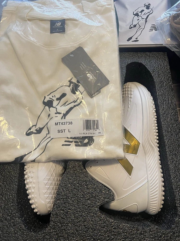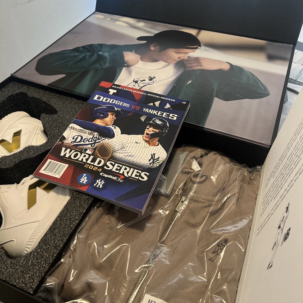 Wow!! 2024 Shohei Ohtani 50/50 MVP World series Champs winners Promotional New balance First generation Ohtani 1’s!! Size 10 shoe and clothing “L” And official 2024 dodgers/yankees World Series program!! This is extremely rare and for the extreme dodgers fan/collectors only.This was a limited and not for sale to public production and will complete your true collection.Items included will be all new and include 1st generation Ohtani 1 size 10. 3 pieces of the Ontani collection clothing size “L”.One of a kind promotional New balance box with picture and letter from New Balance.And final an official program from the 2024 World Series with Ohtani/Judge on cover!