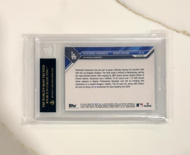 Shohei Ohtani Yoshinobu Yamamoto Topps Now BGS 10 BLACK LABEL Dodgers Debut ❤️ Pokeverse Collectibles ❤️ ✨ Your order will be packed with care using bubble wrap and protective materials to help prevent any damage during shipping. 📦 Combined shipping is available for up to 4 graded cards. If you're ordering more than 4, there may be a small extra charge to accommodate a larger box. 💬 Feel free to message us with any questions — we're always happy to help! 🙏 Thank you for checking out our cards! — Pokeverse Collectibles