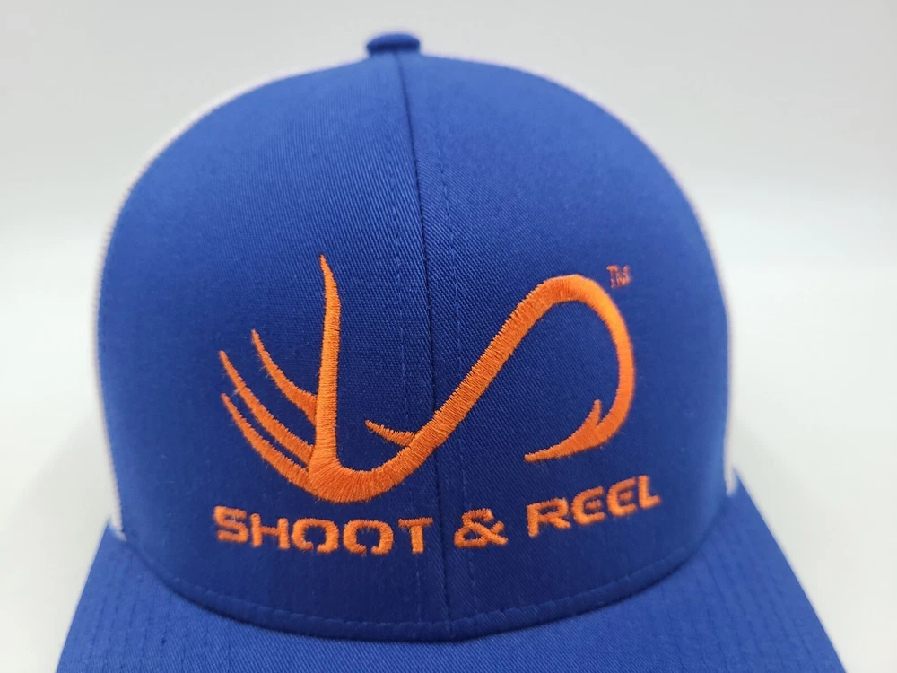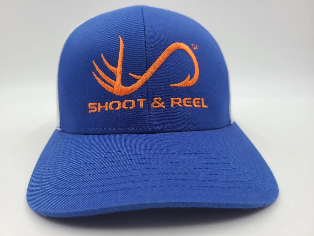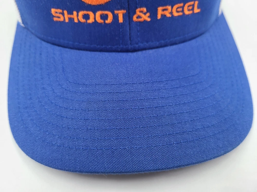 Has a nick underneath the brim as seen in photos. Shoot & Reel Mesh Trucker Snapback Hat Cap Fishing Men Women Blue White Orange. EACH ADDITIONAL HAT PURCHASED IS ONLY $1 ADDED SHIPPING!