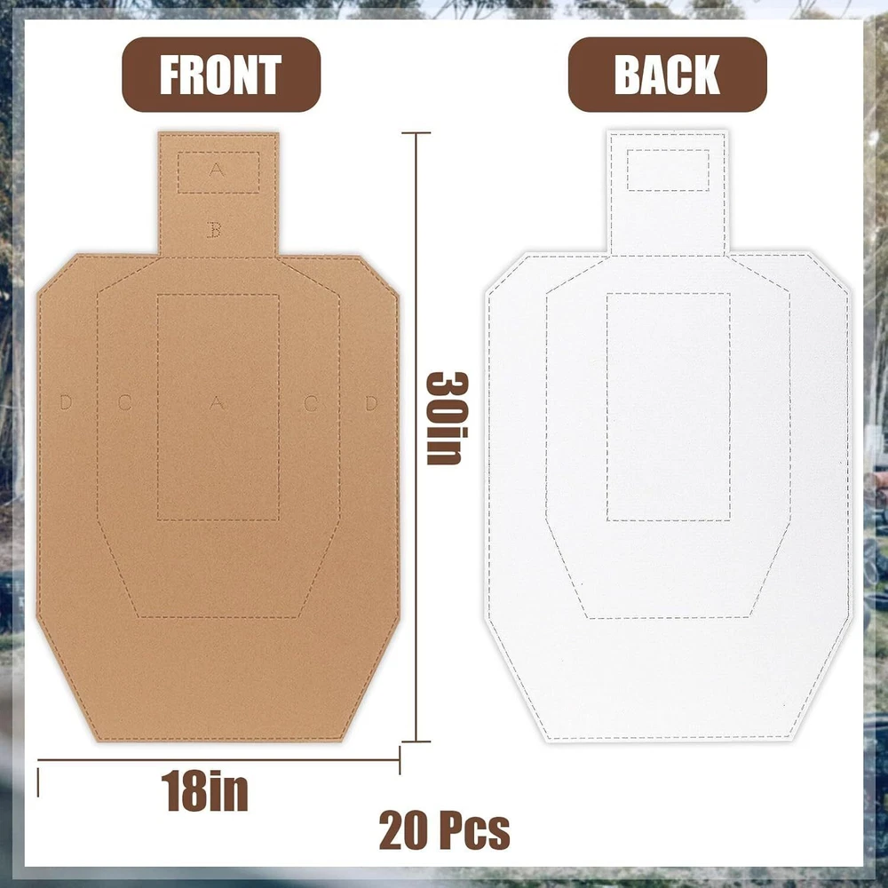 You may also like Adjustable Shooting Target Stand with 10pcs Paper Targets Stable Paper Target 50.0 USD Free shipping Shooting Target Stand Outdoors Paper Target Holder with Stable Adjustable Base 43.17 USD Free shipping Shooting Targets for USPSA, 30x18in Tactical Cardboard Targets, Shooting Targets Silhouette Cardboard, Targets for Shooting Range Practice Competitions Self-Defense Training Material Paper Color Classic Sport Rifle Shooting Shape Square or Rectangular About this item Package Contents: You will receive 20 pieces of tactical cardboard targets, which measure 30 inches tall and 18 inches wide. The size meets USPSA specifications. You can use them to enhance your shooting skills, and they can build your confidence in equipment and shooting skills handling. Improve Your Aim: The front of the shooting target silhouette cardboard is tan, and the back is white to distinguish between shooting and not shooting. They include clear perforations and labelings for easy and accurate target scoring. High-quality Material: Our shooting targets silhouette cardboard is made of three-layer corrugated cardboard, which is not easy to break. You can use them to practice shooting for a long time. Easy to Use: You can hang the shooting targets on a wall or on a separate stand to start your shooting practice, which is very convenient to use. The targets for shooting are suitable for indoor and outdoor use. Widely Used: The shooting targets are not only suitable for short or long-distance shooting, but also for shooting practices, competitions, self-defense training, military, law enforcement, or entertainment shooting. They will allow you to train continuously for several hours. On Feb 18, 2025 at 00:01:39 PST, seller added the following information: