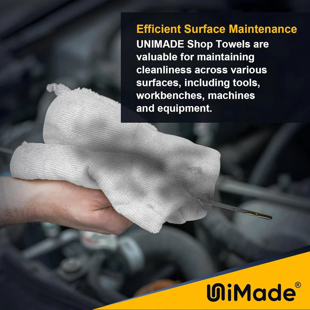 Store New Arrivals Add to Favorite View Feedback Contact Shop Towel, 100 Pack Commercial Grade Work Rags Microfiber Towels for Cars Cleaning Rag Bulk Detailing Cloth for Automotive Bar Mechanic Restaurant Garage Housekeeping, 11.5"X 11.5", White Description Color White Brand UNIMADE Material Microfiber Age Range (Description) All Ages Size 100PK No Scratching& Lint-Free: Our shop towels rags are luxuriously soft and designed to pamper without a trace. These cleaning towels are lint-free and can prevent residue or fibers from clinging to surfaces. Ideal for multiple tasks including car care, cleaning machinery, surface wiping, hand drying, and spill absorption Powerful Cleaning: Unimade commercial grade shop towels boast exceptional cleaning power, tackling messes with ease. From spills to stains, they deliver a thorough clean every time. Say goodbye to stubborn stains and spills with our shop towels Super Absorbent& Quick Dry: Crafted from premium microfiber, UNIMADE shop towels excel in soaking up oils, liquids, and workshop spills. Their highly absorbent qualities enhance their effectiveness in removing stubborn grime and grease Versatile Workshop Essential: UNIMADE shop rags find widespread use in automotive, workshops, garages, manufacturing facilities, housekeeping, Restaurant and diverse industrial settings, adeptly handling tasks like polishing, detailing, and various cleaning applications. They are able to efficiently clean grease, oil, grime, fluid spills, tools, and parts, offering versatile and effective cleaning capabilities for various workshop needs Reusable& Cost-Efficient: Compared to paper towels, our shop towel cleaning rags are machine washable and reusable, reducing waste and ensuring long-lasting performance, making them a cost-efficient choice for your everyday routine Product Description ABOUT US We offer the best prices around on high quality products. Our E-store includes media such as books, movies, music and games while offering electronics, toys, sporting apparel, clothing, tools, general home, garden items and more. SHIPPING We are always working hard to ensure your package arrives as soon as possible. Please understand that some factors like weather, high postal traffic, and the performance of shipping companies are outside of our control. We offer free shipping to the lower 48 states and ship within 2 business days of payment, usually sooner. We do not accept P.O. Boxes. Please provide a physical address. RETURNS We offer a 30-Day Return Policy on items which you are not completely satisfied with. You have the option for a full-refund or an exchange of the item. No returns are available on items shipped outside of the USA. PAYMENT We accept PayPal. CONTACT US This page content is yet to come Please ad us to your favorite seller and visit again later Thank You CUSTOMER SATISFACTION We try our very best to make sure every customer is completely satisfied. If there's a problem, message us! We're happy to help.