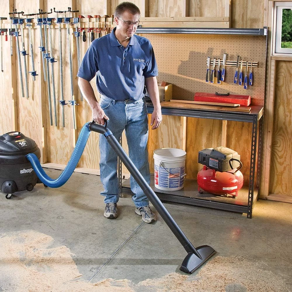 Shop Vac Hose Kit Expandable Blue Shop Vac 2-1/2 Elastic Flexible Polymer Vacuum 2-1/2” Blue Shop Vacuum Hose Extension Kit: This incredibly stretchy 2-1/2'' dust vacuum hose extends up to 12 ft. in length, then collapses back into a compact 2 ft. stack for storage. The dust collector hose weighs 30% less than previous versions and is offered in a blue translucent color. Helps To Prevent Tangling & Tripping: This dust collection hose allows you to reach most areas of your shop, without the hassle of a long, cumbersome hose. As you move closer to your shop vacuum, it retracts to take up excess slack, which helps prevent tangling and tripping. Fits In Standard Shop Vac: With the two included swivel fittings, our dust collection hose can easily connect to your shop vacuum, optional dust right accessories, and many dust ports. Durable Material: The shop vac hose is made of an amazingly elastic, flexible polymer which you can apply for a long time and stretches from approximately 2' to 12' in length. 2.5 "w x 144.0 "w. Weight: 3.24 lb Batteries Required? No Color Blue Material Metal Item Weight 3.24 pounds Batteries Included? No Item Length 12 Feet Outside Diameter 2.5 Inches Is Discontinued By Manufacturer No Product Dimensions 144"L x 2.5"W