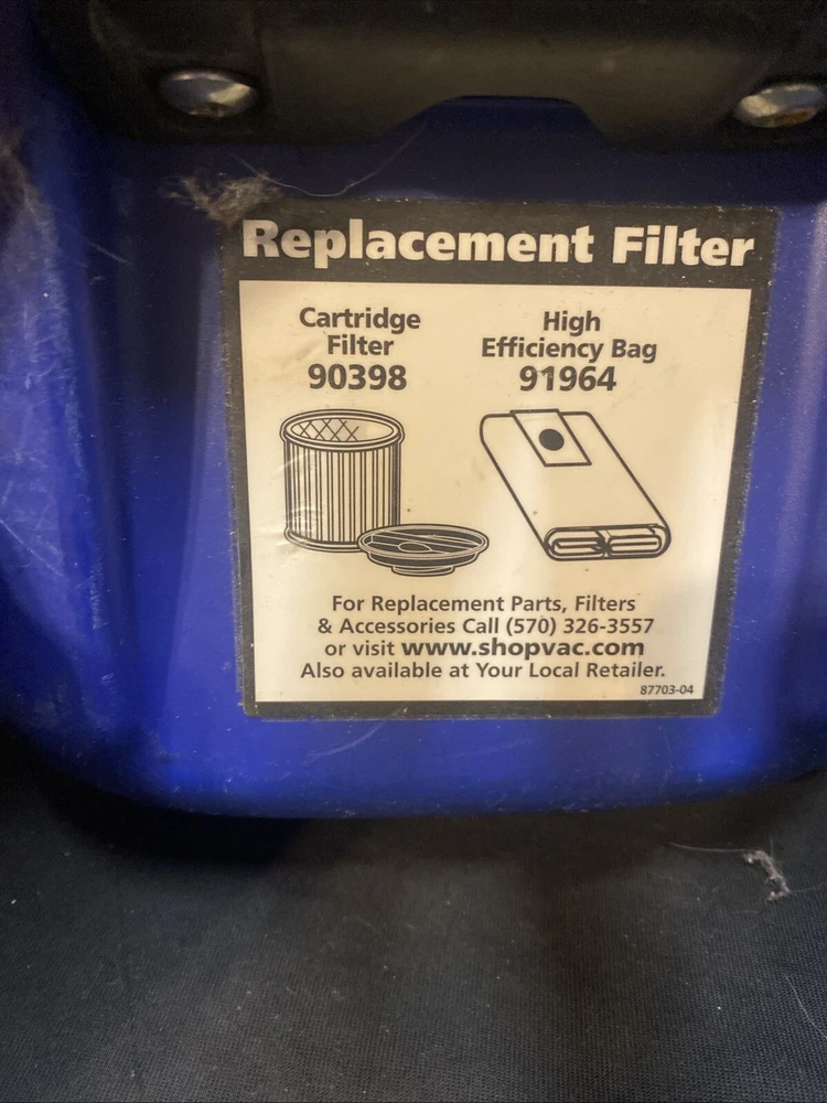 The Shop-Vac model sp550a is a backpack vacuum cleaner with a power of 550W, making it a reliable choice for household cleaning tasks. This lightly used vacuum comes with a filter included, ensuring efficient and effective cleaning. The backpack design of this Shop Vac model allows for easy maneuverability and comfortable use while cleaning various surfaces in your home Has scratches and wear and black marker on finish Has dust in crevices has new filter. Can use optional high efficiency bags as well ( not included) Ships disassembled. Will need to screw back together once delivered.