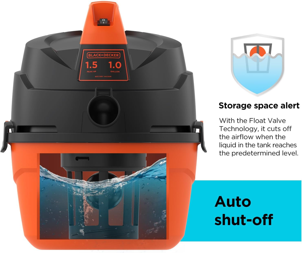 COMPACT AND PORTABLE: This small shop vacuum, weighing only 5.5 lb, can be easily hung on the wall, its 10 ft clean range (6 ft cord and 4 ft hose) is enough for daily use in house, workshop and garage, without unplugging the vac STRONG SUCTION: 1.5 peak HP vacuum motor provides powerful suction to easily clean up the wet and dry messes in daily life, relying on a steady airflow of 60 CFM DURABILITY: With storage space alert function, the air flow will be automatically cut off when liquid is overloading the tank, to extend its service life, and the polymer tank is sturdy Attachments Management: Thanks to built-in accessories holder on the top of lid, you can easily manage the noozle, and the hose can be conveniently wrapped around the handle ACCESSORIES: 4ft Hose * 1, Foam filter * 1, Reusable cloth dry filter & clamp ring * 1, Gulper nozzle * 1, Crevice nozzle * 1, Wall-mount bracket * 1 Product Description Sturdy handle You can conveniently lift this lightweight vacuum to move it Quick-connect locking design The hose can be easily attached to the vacuum port, and the firm locking can prevent it from disconnecting during use Accessories management Nozzles can be fixed on the top of vacuum lid, reducing unnecessary storage messes One switch to operate Extremely easy for you to operate this wet/dry vacuum Compared to other shop vac Add to Cart Add to Cart Add to Cart Add to Cart Customer Reviews 4.2 out of 5 stars 77 4.6 out of 5 stars 52 4.8 out of 5 stars 48 4.8 out of 5 stars 21 Price $44.99 $ 44 . 99 $59.99 $ 59 . 99 $70.99 $ 70 . 99 $79.99 $ 79 . 99 Capacity 1 Gallon 3 Gallon 4 Gallon 5 Gallon Tank Material PP PP PP Stainless Steel Motor Horsepower 1.5 Peak HP 3 Peak HP 3 Peak HP 4 Peak HP Sealed Pressure 52 Inches of Water 50 Inches of Water 50 Inches of Water 50 Inches of Water Airflow 60 CFM 80 CFM 85 CFM 85 CFM Cord Length 6 ft 6 ft 8 ft 10 ft Hose Length 4 ft 4 ft 5 ft 5 ft Included Types of Nozzle Gulper/Crevice Nozzle Gulper/3-in-1 Crevice Nozzle Floor/Gulper/Crevice Nozzle Floor/Gulper/Crevice Nozzle Included Types of Filter Foam/Reusable-Cloth-Dry Filter Foam/Reusable-Cloth-Dry Filter Foam/Reusable-Cloth-Dry Filter Foam/Reusable-Cloth-Dry Filter Other Included Accessories Hose, Wall-mount Bracket Hose Hose, 3* Wands, Inflation kit Hose, 3* Wands Wall-mountable ✔ ✘ ✘ ✘ Disposable Filter Bag ✘ ✘ ✔ ✔