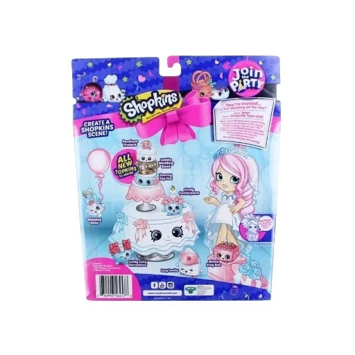 Dive into the delightful world of Shopkins with the Join The Party Wedding Party Collection from Season 7! These charming action figures capture the essence of your favorite characters, bringing the fun and whimsy of the Shopkins franchise right into your home. Each figure stands out with its vibrant, multicolor design, staying true to the playful aesthetic of the beloved cartoon and TV show. Whether you're a seasoned collector or just starting, these original Shopkins models are sure to be a hit. They're not just toys; they're a piece of the Shopkins legacy. Add these delightful characters to your collection and keep the joy of Shopkins' world-going strong. Celebrate your love for the Shopkins franchise with these iconic action figures!