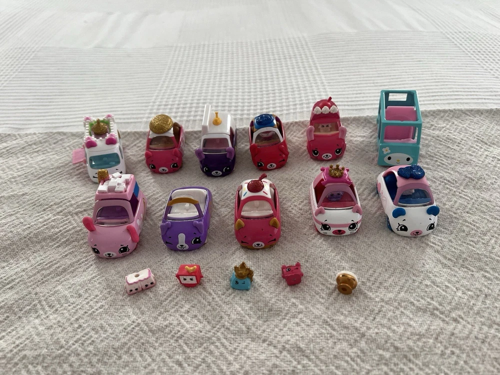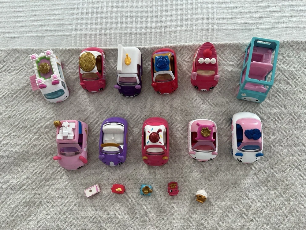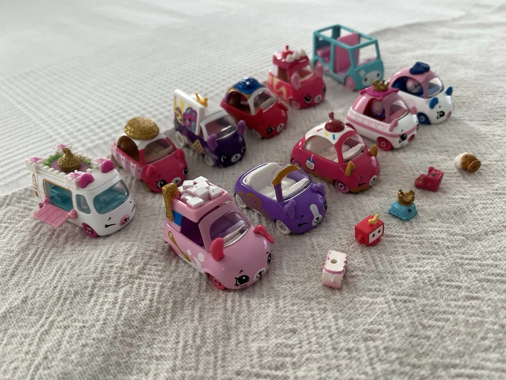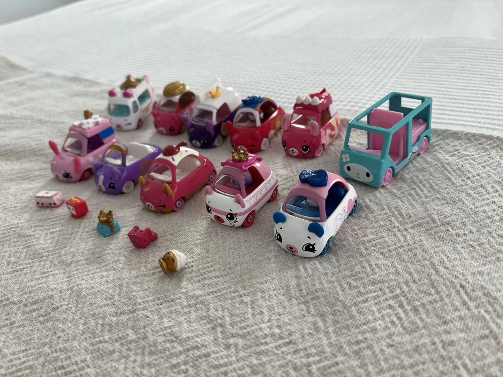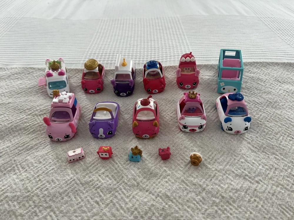 Shopkins Toy Cutie Car Lot. 10 Cars, 5 Shopkins Figurines EUC