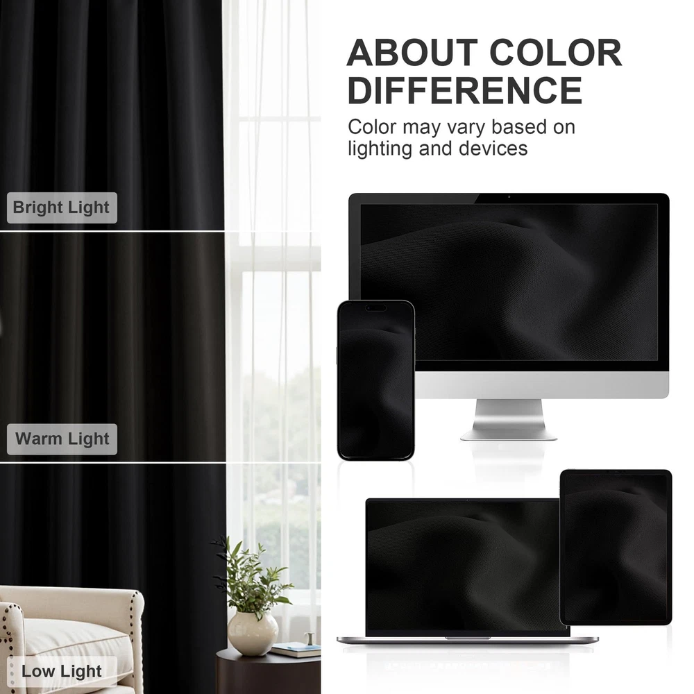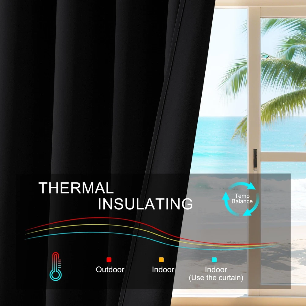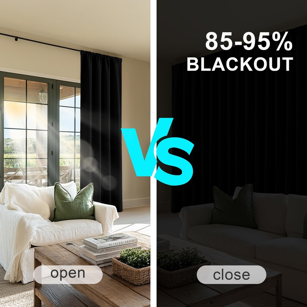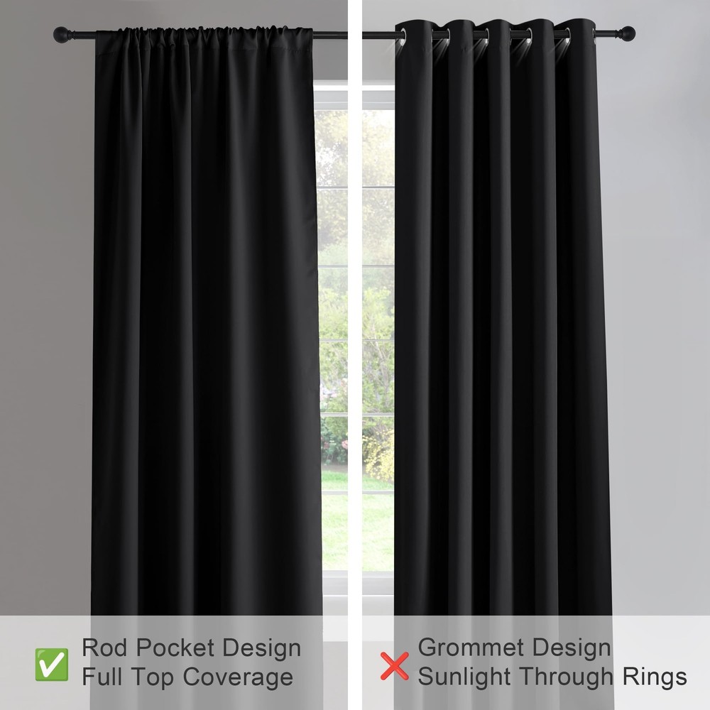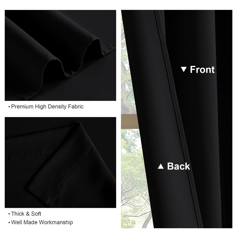 Versatile Blackout Curtains - Elegant Window Dressing The blackout curtain set not only add a lively and elegant atmosphere beauty to your home but also provide you a lot of additional benefits such as privacy protection, energy-saving more than light blocking. Heavy-duty & Environmental Friendly Material: blackout curtains feature advanced triple woven technology and the fabric is durable and effective in shading. Compared with chemical shading cloth, they block light physically and it is more healthy for sleep. Light Blocking & Energy Saving: Soft and heavy-duty blackout curtain panels can block out 85% -99% harsh sunlight and 100% UV ray, protecting your furniture, floors, and artwork from the ravages of the sun. Besides, it is thermal insulated and can also balance room temperature by insulating against summer heat and winter chill, saving your energy cost. Privacy Protection & Noise Reducing: These blackout curtains provide utmost privacy. Holding back the curtain from the window to allow more light when the drapery is not needed for privacy. A certain noise reduction allows you to enjoy your quiet relax or sleeping time. Perfect for: Late sleepers,Shift workers,Seniors,Infants & parents,Students,Computer operators. Sizes & Colors: Available sizes: W42"xL45",W42"xL54",W42"xL72", W42"xL90" per panel(Sold in pairs) Available Colors: Dark Grey,Navy Blue,Beige,Black,Brown,Greyish White,Burgundy Red,Turquoise,Royal Purple,Mocha,White. Care Instructions: Machine wash cold with like colors. Use only non-chlorine bleach when needed. Tumble dry low. Warm iron as needed. Note: 1. Due to manual measurement, 1-3cm size error is allowed. 2. Due to different computer screen displays, the color of the actual item may slightly different from the above images. Have you adorned your windows with Blackout Curtains ? Package Contents: Includes 2 panels, each measuring 42 inches wide by 45 inches long with a 3" rod pocket that fits most standard rods. Both sides are uniformly colored for a sleek look. Versatile Decor: Perfect for a variety of spaces, these small curtains are ideal for kitchen, bathroom, bedroom, RV, and more. They add a classic touch to any room, fitting well in cafe, nurseries, basement, and other compact windows. Light Blocking & Privacy: These curtains block 85-95% of sunlight and UV rays, ensuring privacy and reducing glare, especially with darker colors. They also help maintain a comfortable room temperature by insulating against heat and cold, while protecting furniture from sun exposure. Energy Efficiency: These thermal insulated curtains help maintain a stable indoor temperature by reducing heat loss in winter and blocking heat in summer, making them ideal for bedrooms, living rooms, and nurseries. Easy Maintenance: Durable and easy to care for, these curtains are machine washable in cold water. Use non-chlorine bleach as needed and tumble dry on low. A warm iron can be used to smooth out any wrinkles.