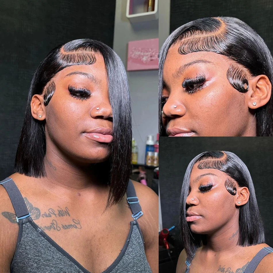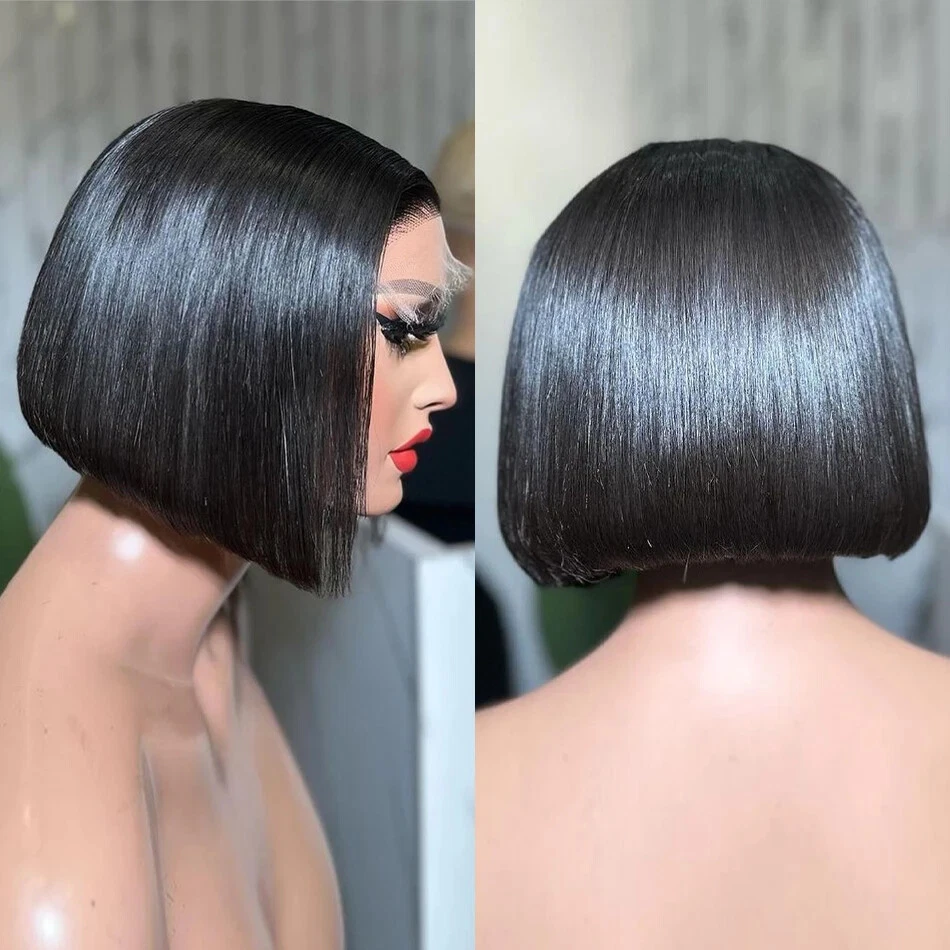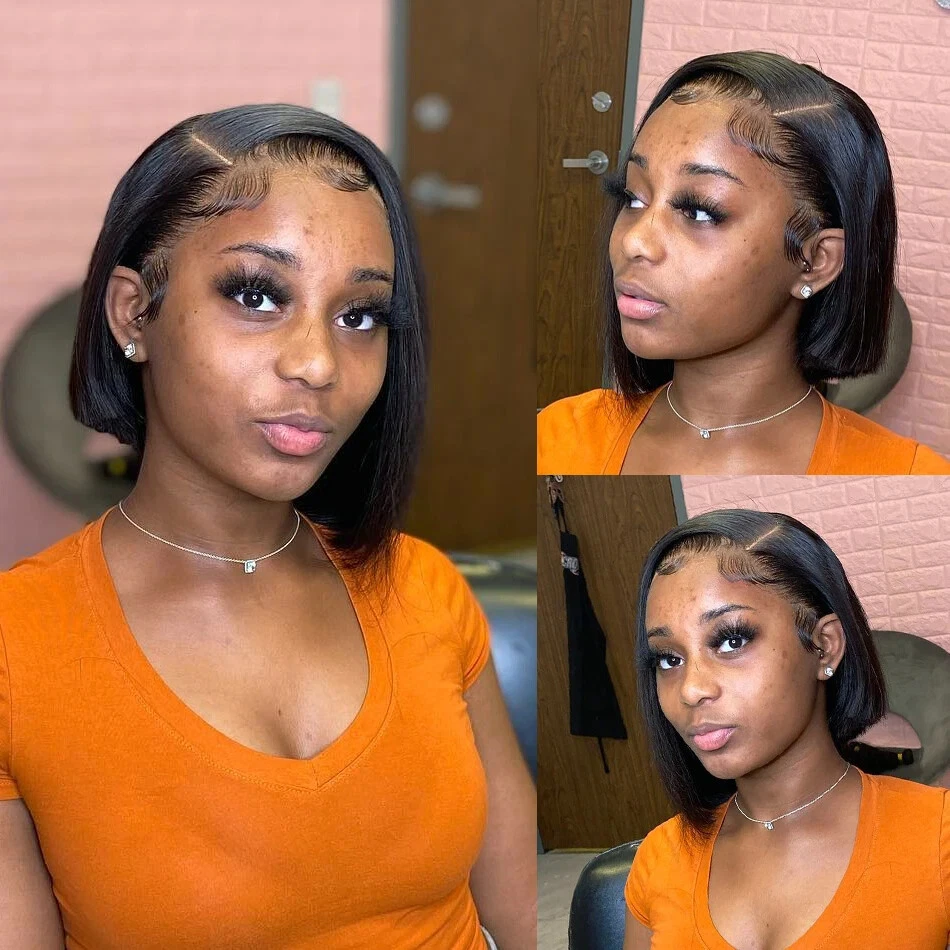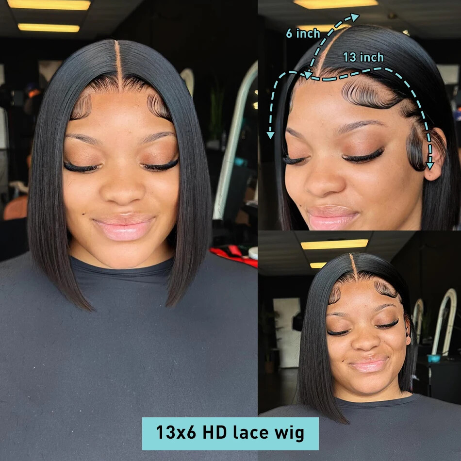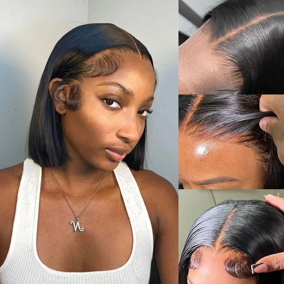 Glueless HD Lace Front Wig Brazilian Human Hair Bob Preplucked Straight Bob