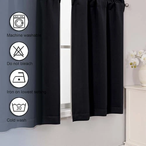 Return Policy Fast Delivery Trusted seller Short Black Out Curtains 24 Inch Length, Small Blackout Curtain Rod Pocket Half Window Curtains for Kitchen Basement Cabinet Camper RV Bunk, 2 PCS, Each 30" Wx24 L, Black Product Description Pair Sold: Each package includes 2 blackout curtain panels, each measuring 30" W x 24" L, compatible with curtain rods up to 1.5" diameter. These blackout curtain offers 2 hanging options - rod pocket & clip rings(not included). Premium Fabric: curtains adopt the innovative three-layer weaving technology, boasting outstanding performance. They perfectly balance durability and softness. With a solid color design on both sides, these curtains can enhance the taste of your home decoration. Meanwhile, you can enjoy the benefits brought by excellent light-blocking, thermal insulation, and durability. Wide Application: This curtain features a flexible size, making it suitable for a variety of spaces such as kitchens, bathrooms, basements, cabinets, as well as campers and travel trailers. It effectively blocks out light and offers privacy protection. Additionally, its minimalist design style can seamlessly blend into different decoration styles, enhancing the overall aesthetics of the room and adding a touch of warmth and comfort to various spaces. Superior Performance: curtains utilize innovative triple-layer woven technology to block 60%-95% of light and UV rays (darker hues enhance efficacy). Featuring noise-reducing properties, they simultaneously protect furniture and carpets from solar-induced fading. Machine Washable: Machine wash cold in gentle cycle with like colors. Only non-chlorine bleach when needed. Tumble dry Shipping Returns Payment Shipping Shipping is FREE to all addresses other than APO/PO boxes in the lower 48 states. All our stock ships from US-based warehouses. Shipped via USPS or UPS (depending on location and package weight) Unless stated otherwise, all orders will ship within 24-72 hours of your payment being processed. Check our feedback to see the great reviews of FAST shipping we offer. Returns Seller does not accept returns Payment We currently accept payment via eBay managed payments only. Once payment is cleared, we will dispatch your shipment within 1-3 business days. Please refer to the "Shipping" tab for more information regarding shipping speed to your destination.