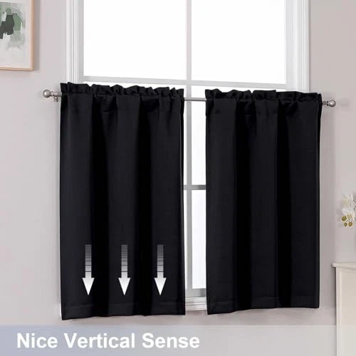 Short Out Curtains 24 Inch Length, Smallout 30"W x 24"L (Pack of 2) Black