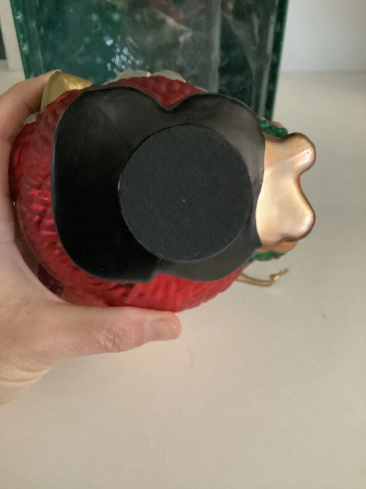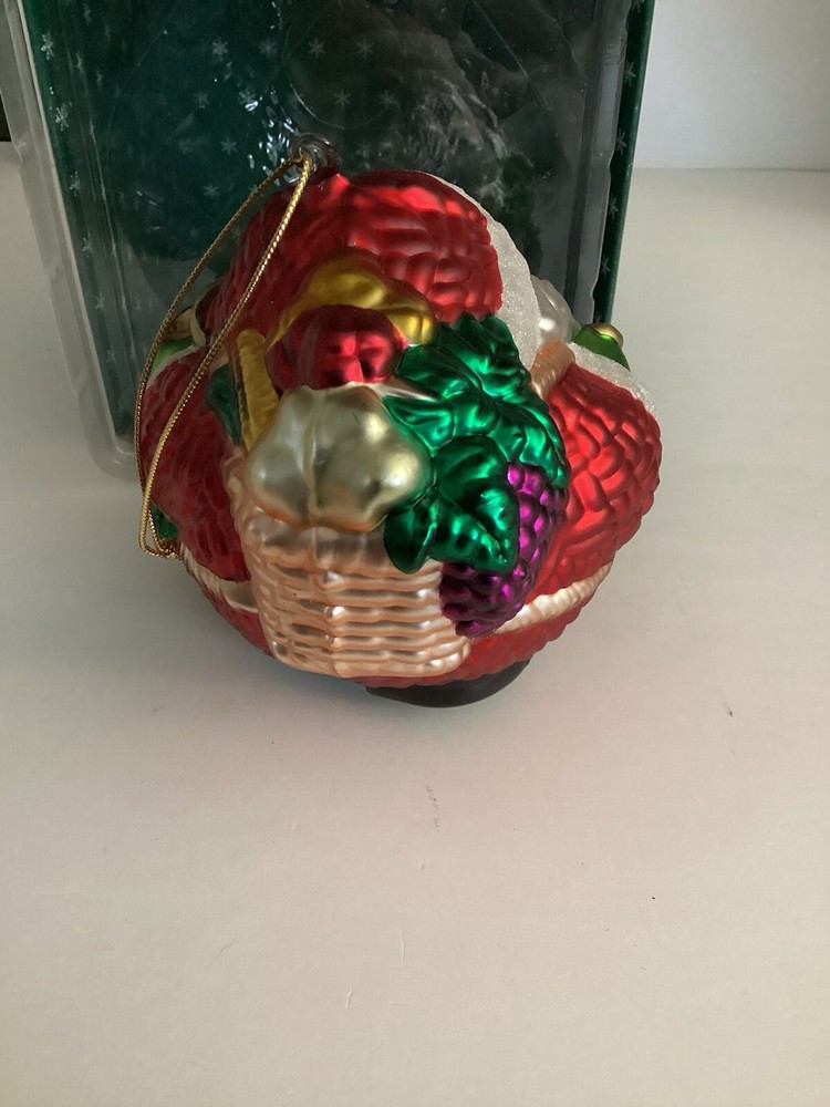 Short And Stout Glass Santa Ornament With Reindeer. This adorable glass ornament features a short and fat round Santa with a cute reindeer standing next to him. He has a basket of goodies on his back. He is approx 5” tall, 5” wide and 5” deep. Comes with the box.