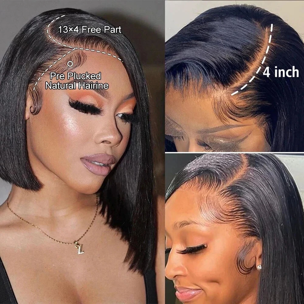 $ 59.99Glueless Short Bob Wig Straight Lace Front Human Hair Pre Plucked