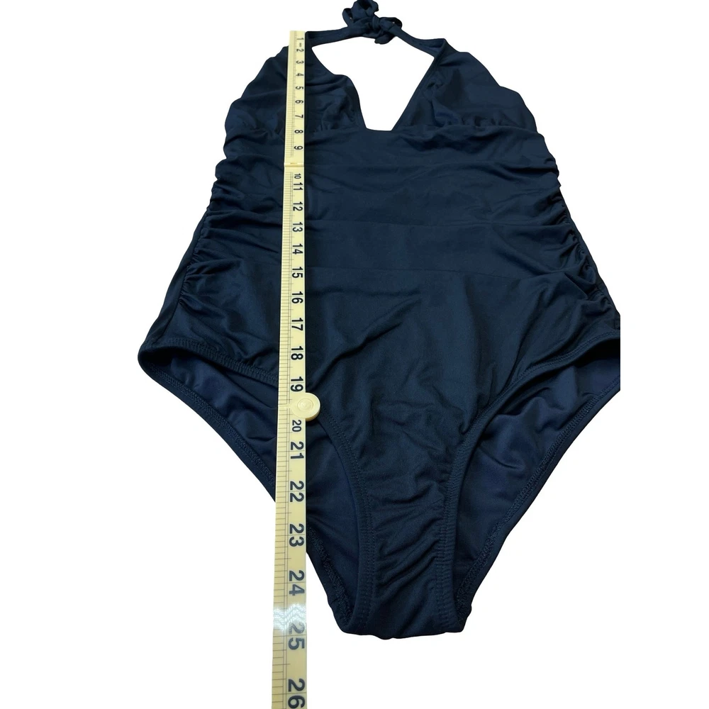 - Brand: Shoshanna Swimwear - Size: 6 - Color: Black - Style # 18SB7218 - Material: Face: 86% Nylon, 14% Spandex; Lining: 95% Polyester, 5% Spandex - Condition: Gently used, no visible flaws. Please refer to photos for measurements and full detail. Features: - Halter neckline with adjustable tie closure - Subtle ruching for a flattering fit - Full coverage with lined interior - Made in the USA with imported and domestic fabric * Shoshanna swimsuit, ruched one-piece, slimming swimwear, classic black swimsuit, halter swim, resortwear, beachwear, poolside chic, elegant swimwear, vacation essentials, modest swimsuit, timeless design, cruise fashion, tummy control, preppy swim Note: A listing image may be AI-generated to show the style. See original photos for the actual item being sold. # Xx