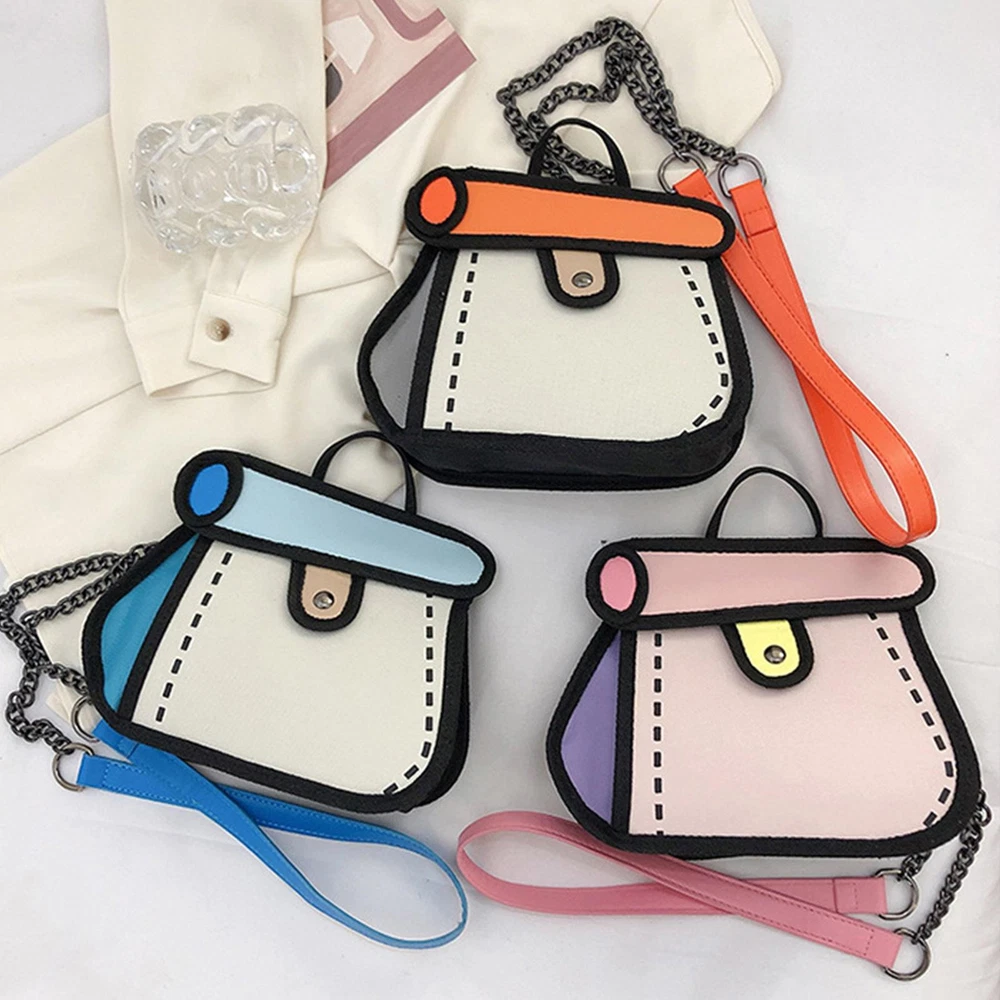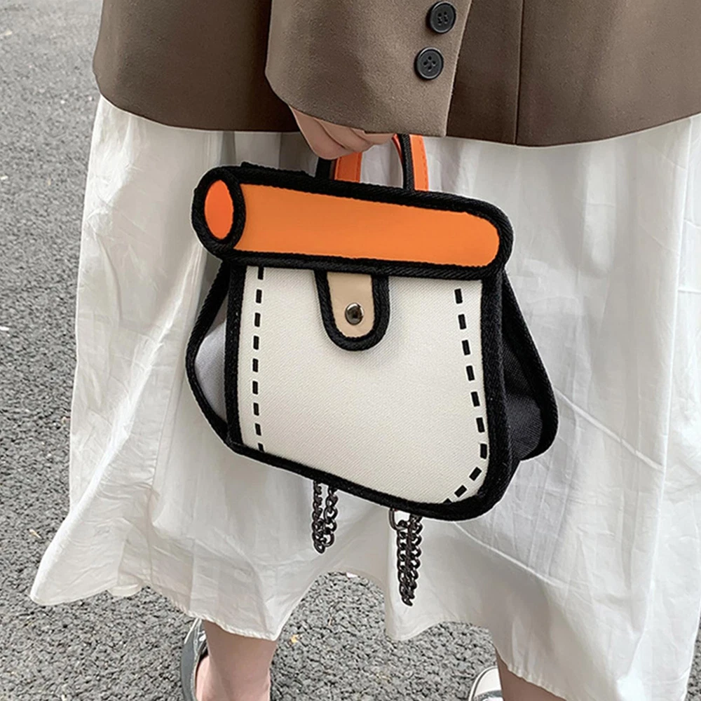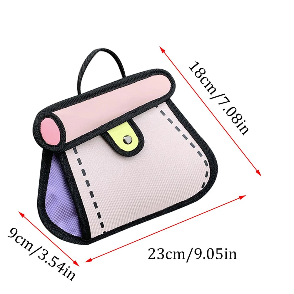Bullet Points: Fun and Fashionable : Pack of 2D comic style shapes and colors will complement your clothes, making your life full of fun. These bags have a unique design that will improve your happiness and boost your confidence. Convenient and Organized: The 2D drawing bag provides a perfect organization for your tools. Made of waterproof canvas fabric that ensures the safety of your materials under any weather conditions. Functionality: Keep your essentials organized with this 2D drawing bag that can accommodate your cosmetic, business cards, keys, bank cards, and cell phone. It's a versatile and multifunctional accessory suitable for travel, work, or daily use. Beautiful Present: 2D Drawing Bag. This bag lets you show your style by drawing on the front panel with the pens that are provided. This bag is a fun and stylish gift for any occasion, such as Halloween, birthday, Valentine's Day, New Year, and Christmas. Vast Application: Whether you are on a business trip, at the beach, traveling, or just having a daily use, this 2D drawing bag can suit your needs. It can be easily transformed into different shapes and styles to match any outfit and occasion. This women's tote bag is perfect for daily use! Its comfortable shoulder strap makes carrying your essentials a breeze. With space for your bank cards and other accessories, this bag will complement your clothes for any occasion. it also makes a great gift for someone special. Specification: Product name: 2D cartoon handbags Material: waterproof canvas Weight: about 270g Size: (approx.)18*23*9cm/7.09*9.06*3.54 inches Shoulder strap: not adjustable Packing List: 1pc * 2D drawing bag