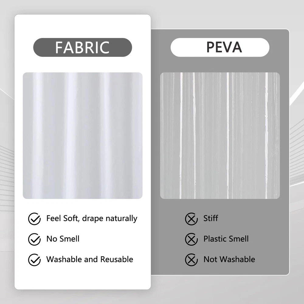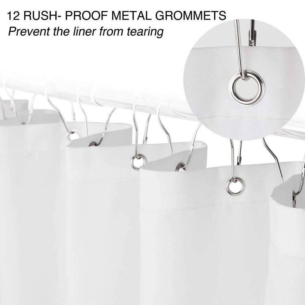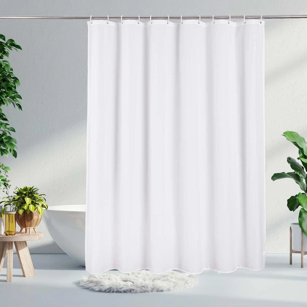 Pattern: Modern Solid White Material: Heavy Duty Water-Repellent Polyester Size Available: 36-inch by 72-inch /100cm by 180cm 54-inch by 78-inch /140cm by 180cm 60-inch by 72-inch /150cm by 180cm 72-inch by 72-inch /180cm by 180cm 72-inch by 78-inch /180cm by 200cm 72-inch by 75-inch /180cm by 190cm 72-inch by 86-inch /180cm by 220cm 78-inch by 72-inch /200cm by 183cm 78-inch by 84-inch /200cm by 214cm Product Weight: 0.60kg / Package Weight:0.65kg Weights(gsm): 120gsm Package included: 1xplastic bag+1xshower curtain+ 12xplastic shower curtain rings Why Eforcurtain's Shower Curtains: Water drops beads up just like a seed pearls in rolling on the lotus leaves. Classic pure white creates full of inviting and welcome in hotel or home bathroom. With metal grommets for added support. Machine washable and fast drying. Eforcurtain offers many sizes, fits for any bathroom. Eforcurtain's Promise: This product is designed and sold exclusively by Eforcurtain. Only buy from Eforcurtain to get genuine Eforcurtain products with manufacturer warranty and superb customer service. Heavy fabric shower curtain liner: 130GSM thick and premium polyester fabric for your bathroom, easy to hang naturally and drapes nicely, long term use as shower liner or curtain Waterproof shower curtain liner: Made of premium fabric with the ultimate waterproof coating tech, making it completely water proof but still soft feeling. White shower curtains: Natural than plastic one, Washable and Reusable liner, It can be used as shower curtain liner or shower curtain for your bathroom 72x72 inch standard liner:72 wide by 72 height (inches) standard size available for your bathroom Durable liner: 12 rustproof grommets prevents from tearing and promotes this narrow shower curtain liner long lasting
