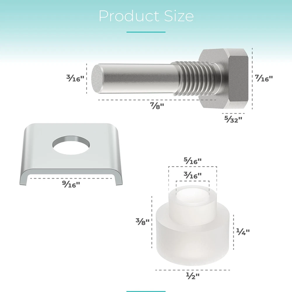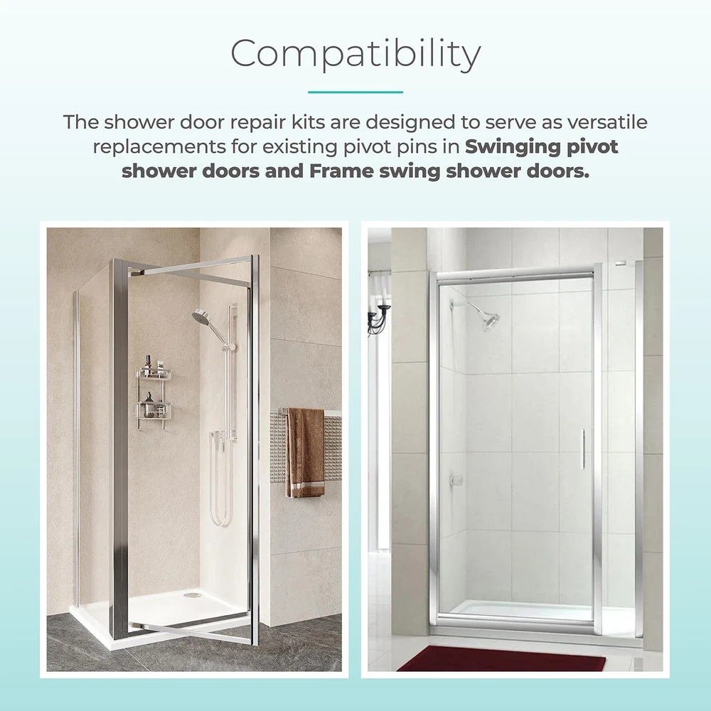 Shower Door Repair Kits with Shower Door Pivot Pin Kit #SDPP01 and Pivot Bushing #SPB12, Glass Shower Door Parts for Framed Swing Shower Doors, Shower Door Parts Compatibility Glass shower door pivot hinge parts are designed to serve as versatile replacements for existing pivot pins in swinging pivot shower doors and frame swing shower doors. The shower door pivot pin kit fit for pivot shower doors, framed swing doors, glass swing doors. Package Include The shower door parts include: 1 × shower door hinge pivot pin kit #SDPP01(include 1× stainless steel pin,1× hex-nut,1× washer) 1 × Pivot Bushing #SPB12 Easy Installation The pivot shower door parts are easy to installation. Simply remove the old fittings and securely fix and tighten the new pivot pin, hex nut, washer and pivot bushing for a hassle-free setup. Gloves are recommended for installation to protect your hands. 【Compatibility】The shower door repair kits are designed to serve as versatile replacements for existing pivot pins in swinging pivot shower doors and frame swing shower doors. 【Superior Material】Our shower door pivot pin kit are made from top quality Stainless Steel and pivot bushings are made of high quality nylon, high strength, anti-corrosion and anti-rust, wear-resistant and impact-resistant, sturdy and durable. High precision and hardness ensure long term reliable service. 【Package Include】The shower door parts include shower door pivot pin kit #SDPP01(include stainless steel pin, hex-nut, washer) and #SPB12 pivot bushing. 【Easy Installation】The pivot shower door parts are easy to installation. Simply remove the old fittings and securely fix and tighten the new pivot pin, hex nut, washer and pivot bushing for a hassle-free setup. Gloves are recommended for installation to protect your hands. 【Quality Service】We are committed to providing every customer with quality service, if you encounter any problems when using shower door pivot hinge kits, you can send us an at any time, we promise to reply within 24 hours, and give you a satisfactory answer.