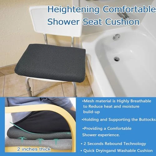 Shower Seat Cushion with Non-Slip Silicone Bottom,Soft 4D Mesh Fabric,Bathtub