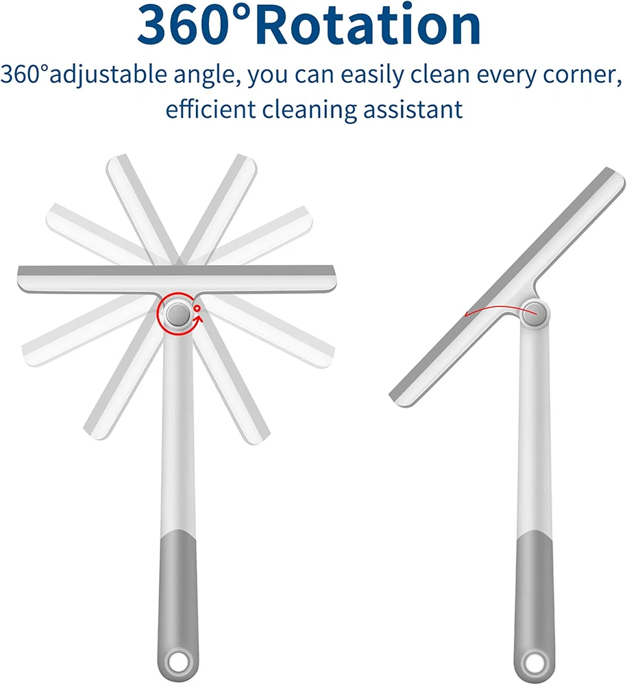 Multi-purpose Shower Squeegee - The squeegee can clean glass doors, wall tiles, shower doors, mirrors, car window, tabletops and house windows. The squeegee for glass door can remove water spots, with the glass door squeegee, you will have a clean room Silicone Shower Squeegee - The shower glass door squeegee is made of soft rubber and plastic materials, which make the glass squeegee very comfortable to grasp, sturdy and durable, the soft shower squeegee edge won't scratch the glass surface Smart 360° Rotation Design Shower Door Squeegee - The window glass squeegee has a pivot connector between the head and handle, The head can be adjusted to the angle you need, this window squeegee cleaning tool makes it easier to clean edges and corners Shower Squeegee 12 inch - The silicone squeegee with long handle 12 inch and the blade of our bathroom squeegee for shower doors are parallel when folded up plus the hole in the extendable handle make it easy for hanging up and storage Every shower squeegee for glass doors from our store will have a 12 month quality support. If you have any issue with these glass squeegee, please just . Customer's experience is pleasure for us Product Description