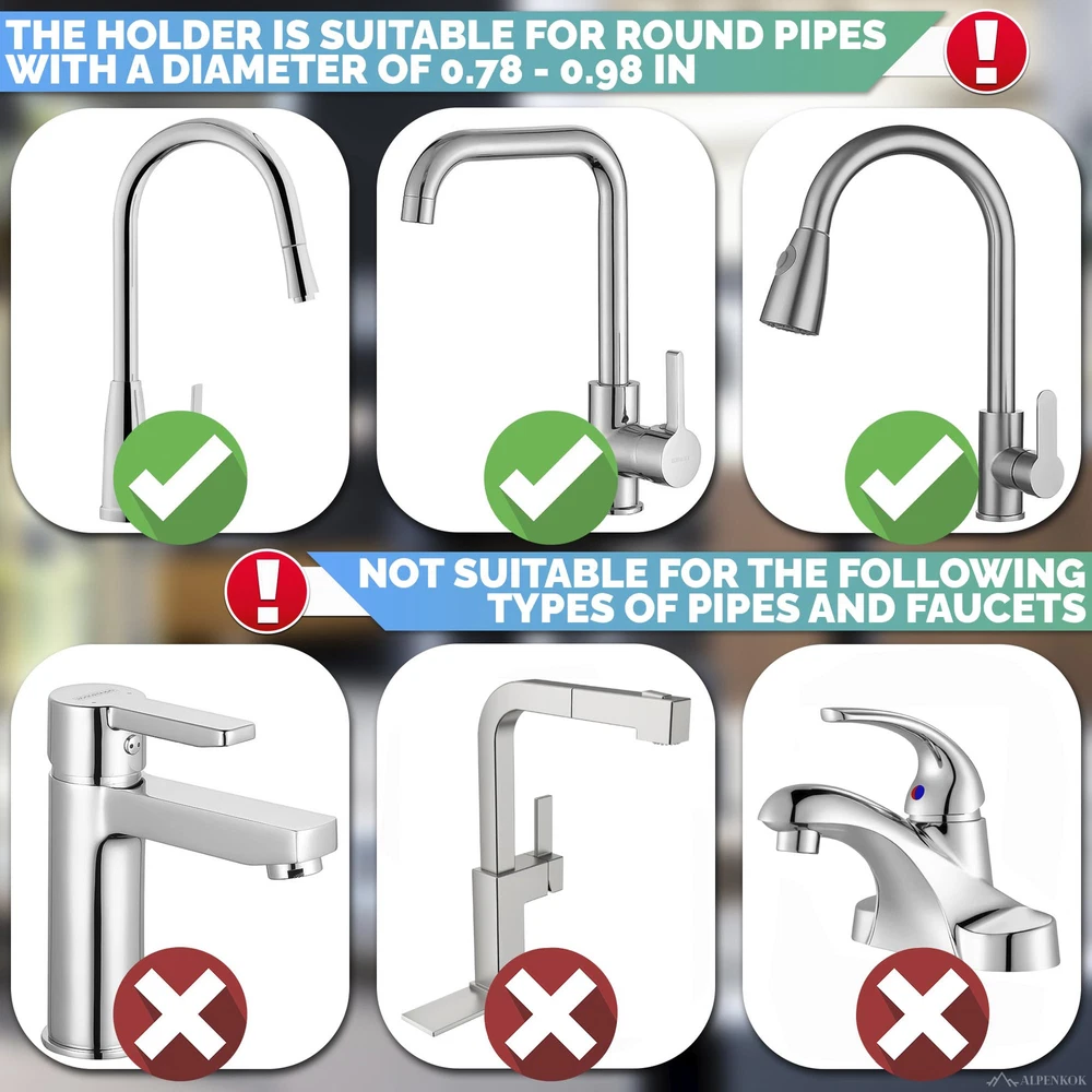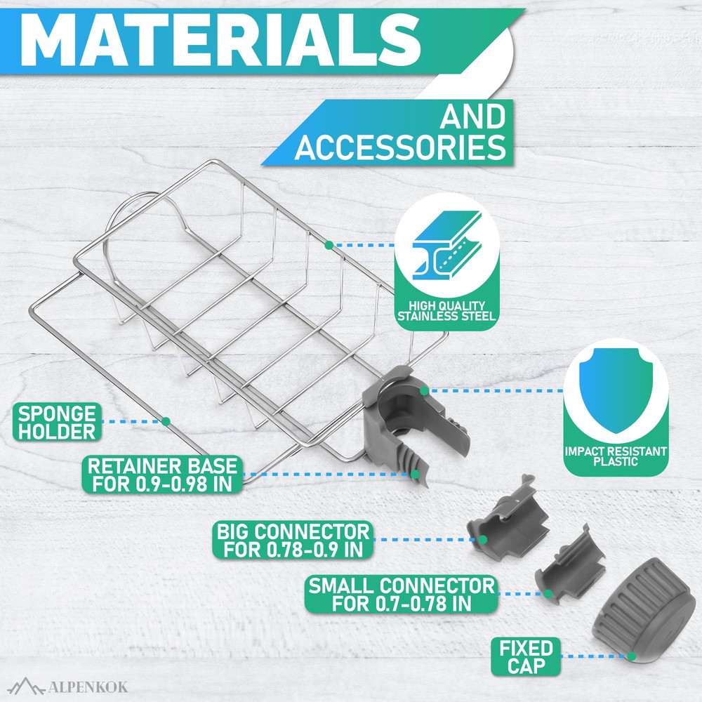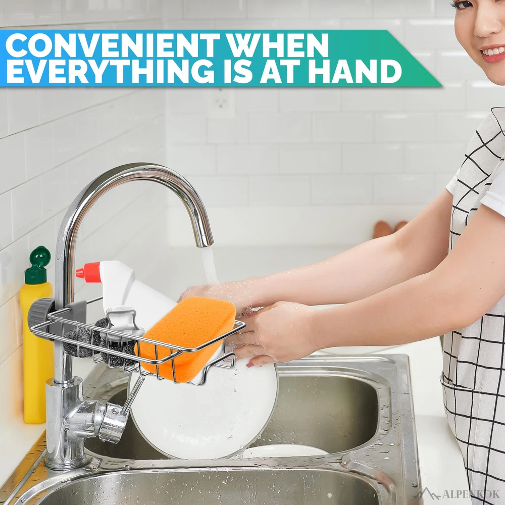 High Quality: Our kitchen sponge holder is ❗suitable only for 0.78" - 0.98" diameter pipe❗ made of stainless steel, which is waterproof and rust-proof. You can use it for an extended period. Bearing Capacity: This dish sponge holder for sink offers exceptional weight-bearing capacity, providing ample space for all essentials. Elevate your countertop organization with a sink brush holder. Clamp Design: Our kitchen sponge holder for sink is designed with a secure clamp that fits snugly on your faucet, eliminating the risk of falling. Transform your kitchen with this practical solution. Multi-purpose: This over faucet sponge holder can be used as a sponge rack, dishwashing brush rack, hand sanitizer rack, soap holder etc. You can use it in kitchens as well as in your bathrooms. Easy to Install: You can set it up without drilling holes, using glue, or requiring any tools. Simply place kitchen sink accessories on the tap and secure them with a single clip. It's ready to use.