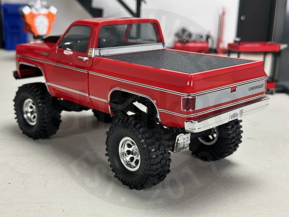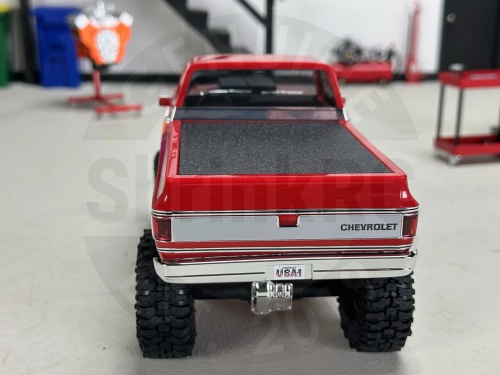 ShrinkRC Bed Tonneau Cover for Traxxas TRX-4M ® Chevrolet K10 High Trail and TRX-4MT ® Monster Truck. 1/18 scale. Body not included. Attaches to factory screw locations. Made in USA. This product is not affiliated with, endorsed by, or associated with Traxxas, L.P., or its products and services. Traxxas® and TRX-4® are trademarks or registered trademarks of Traxxas, L.P.