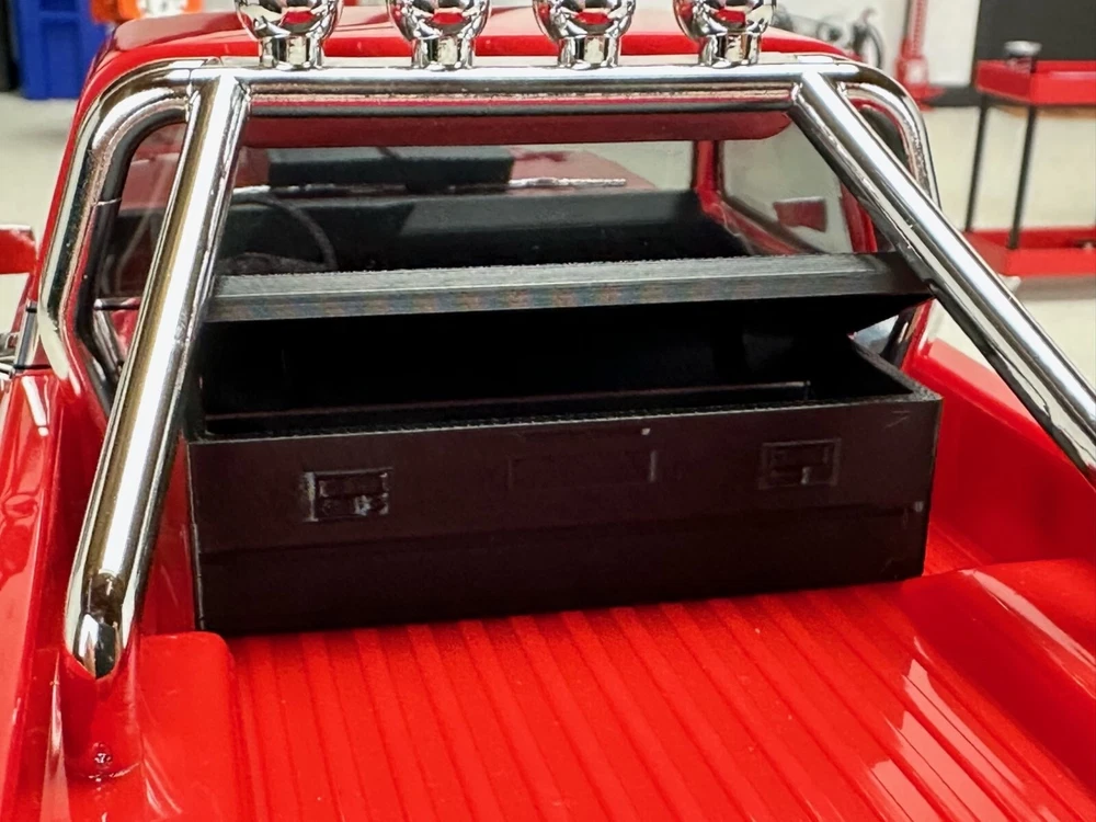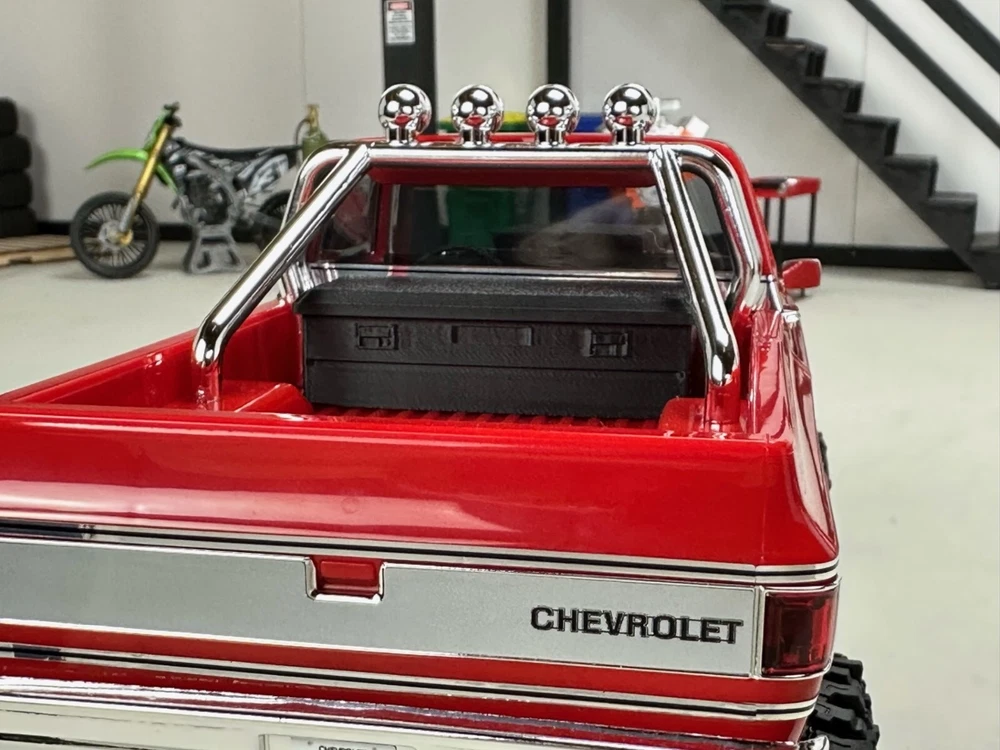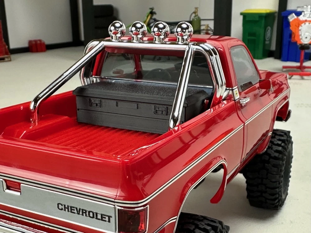 ShrinkRC Small Toolbox for Traxxas TRX-4M ® Chevrolet K10 High Trail and TRX-4MT ® Monster Truck . 1/18 scale. Body not included. Attach with double sided tape (not included). Made in USA. This product is not affiliated with, endorsed by, or associated with Traxxas, L.P., or its products and services. Traxxas® and TRX-4® are trademarks or registered trademarks of Traxxas, L.P.