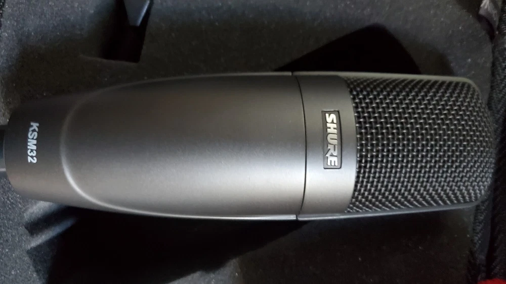 Mint condition Shure KSM32 large diaphragm cardioid condenser. Comes in case with shock mount and clip. 2 of 2. Message me if you would a Slight deal on both of them. They aren't sequential Serial numbers but they are very close.